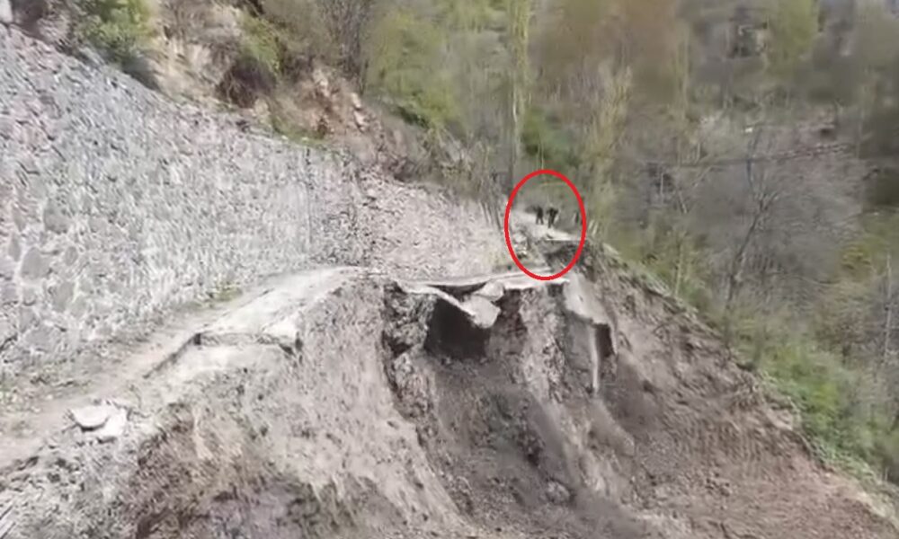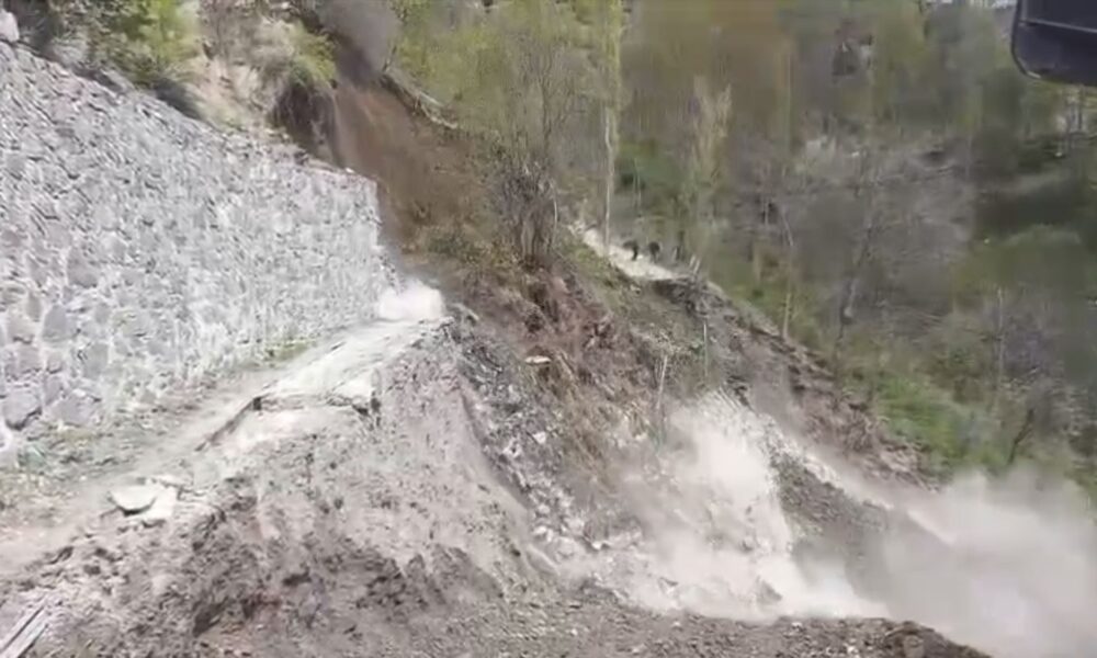 Yusufeli ilçesi Yüncüler köyündeki yamaç alanda, iş makinesi ile sürdürülen yol ve istinat duvarı yapım çalışmaları sırasında dün sabah saatlerinde heyelan oldu. Durumu fark eden iş makinesi operatörü ile diğer çalışanlar, bölgeden uzaklaşıp toprak altında kalmaktan son anda kurtuldu. O anlar, iş makinesi operatörü tarafından cep telefonuyla görüntülendi. Görüntüde; heyelanla yol güzergahındaki taş duvarın büyük bir gürültüyle yıkıldığı, yamaçtan hızla kopan toprağın sürüklendiği, çevreyi ise toz bulutu kapladığı yer aldı.