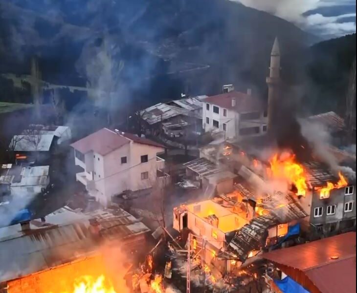 Dutlu köyünde Şener, Şinasi ve Mehmet Özcan kardeşlere ait 2 katlı ahşap evde, dün sabah saatlerinde, bilinmeyen nedenle yangın çıktı. Alevler büyüyüp bitişikteki 3 ev, cami ve lojmanına sıçradı. Yangını fark eden köylülerin uyarısıyla evlerde bulunanlar, dışarı çıktı. İhbar üzerine bölgeye itfaiye, AFAD ve sağlık ekipleri sevk edildi. İtfaiyecilerin müdahalesiyle yangın söndürüldü. Yangında 4 ev, cami ve lojman kullanılamaz hale gelirken, can kaybı ve yaralanmanın olmadığı bildirildi.