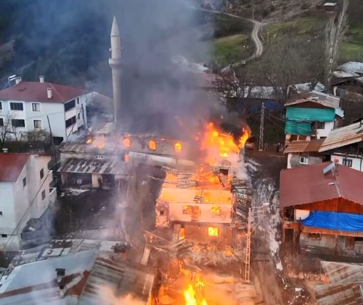 Artvin’deki yangında camiden geriye duvarları ve minaresi kaldı