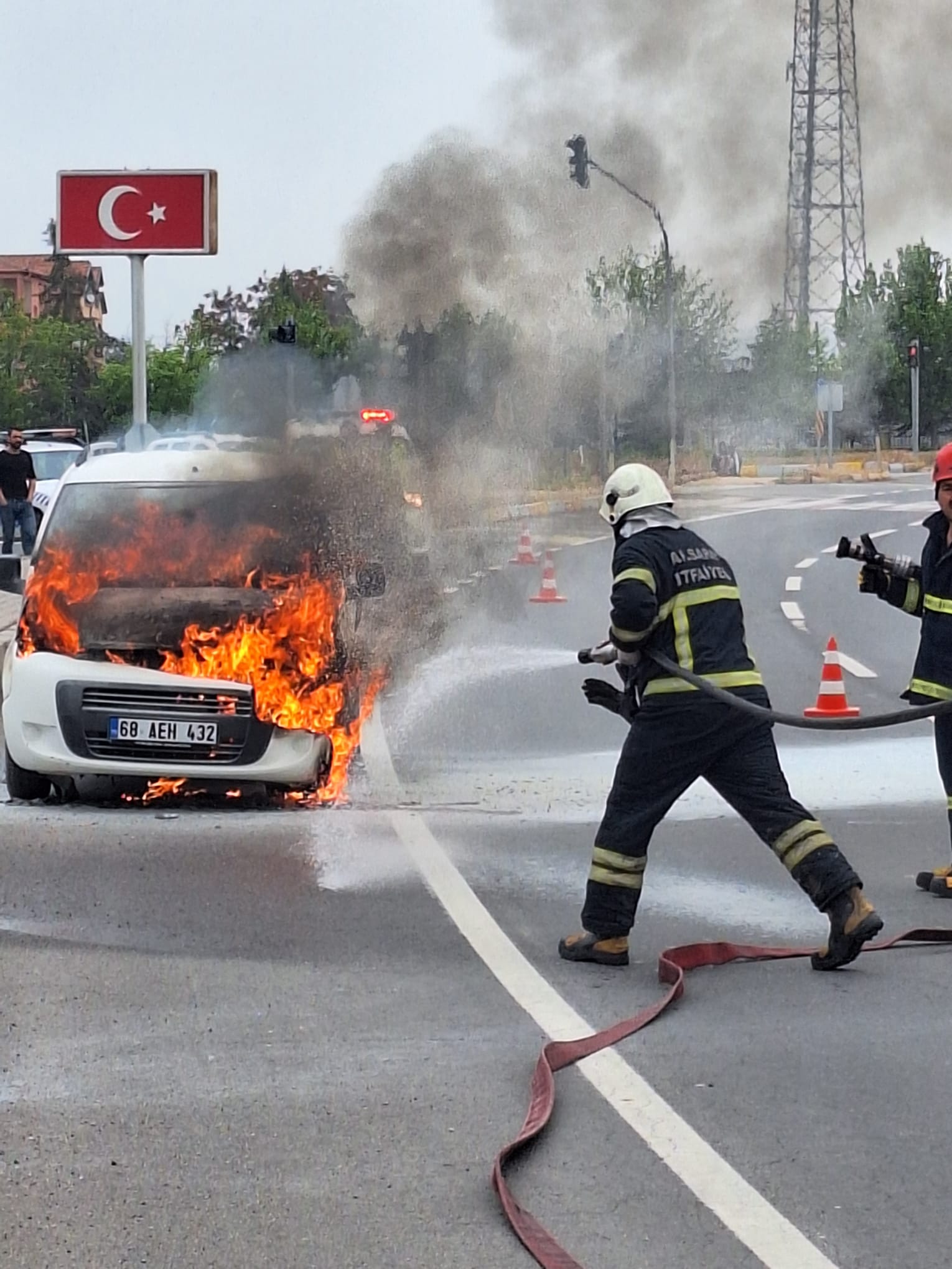Olay, saat 09.30 sıralarında meydana geldi. Aksaraydan Eskile asansör tamirine gidenlerin içinde bulunduğu Ali Fuat Karakoç yönetimindeki 68 AEH 432 plakalı hafif ticari aracın motor kısmından dumanlar yükselmeye başladı. Karakoç, Aratol Mahallesindeki kavşakta aracı emniyet şeridine park edip, kaputu açıp baktı. Bu sırada alevler yükseldi. Karakoç ve yanındaki arkadaşları araçtan uzaklaştı. İhbar üzerine adrese polis ve itfaiye ekipleri sevk edildi. Alevler itfaiye ekiplerinin yaklaşık 20 dakika süren müdahalesiyle söndürüldü.