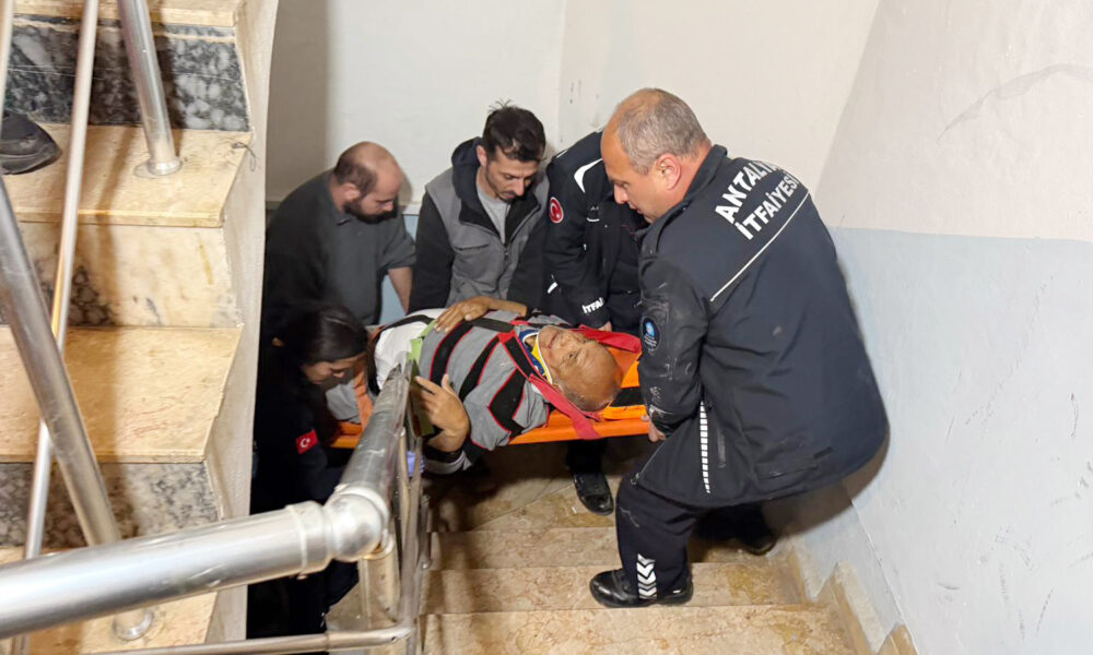 Bina yöneticisinin ihbarıyla adrese ekipler sevk edildi. Antalya Büyükşehir Belediyesi itfaiye ekibi, 5 metreden düşen İbrahim D.yi kurtarmak için çalışma başlattı. İbrahim D., bulunduğu yerden çıkartılarak ambulansla hastaneye kaldırıldı. İbrahim D.nin çeşitli yerlerinden yaralandığı, hayati tehlikesinin bulunmadığı öğrenildi.