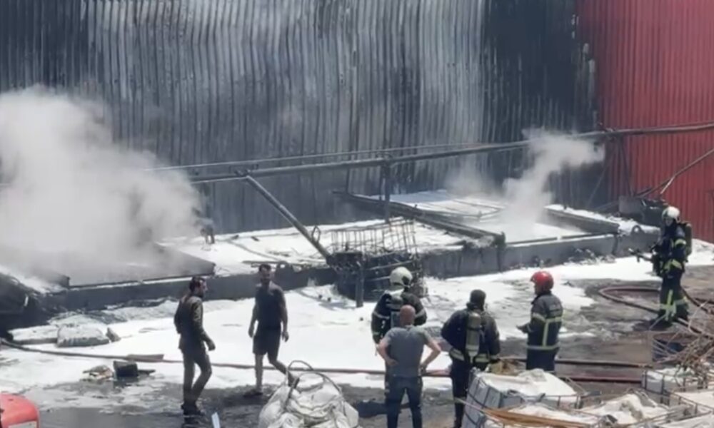 Asfalt fabrikasında çıkan yangın söndürüldü