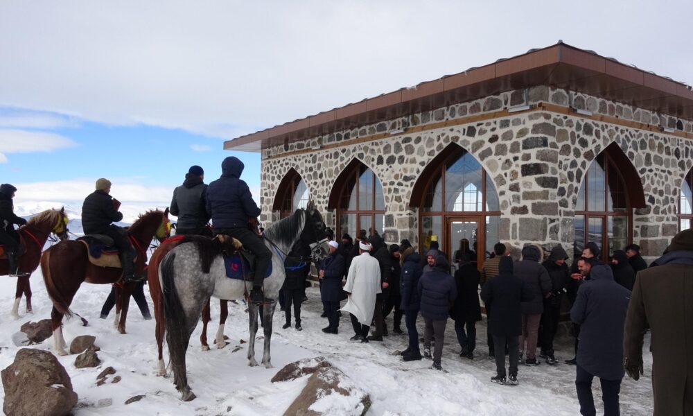 Hava sıcaklığının sıfırın altında 10 dereceye kadar düştüğü tepede, Erzurum Büyükşehir Belediyesi tarafından inşa edilen türbenin açılışı da gerçekleştirildi. Vali Mustafa Çiftçi, Büyükşehir Belediye Başkanı Mehmet Sekmen ile katılımcılar açılış kurdelesini kestikleri türbeyi gezerek dua etti.