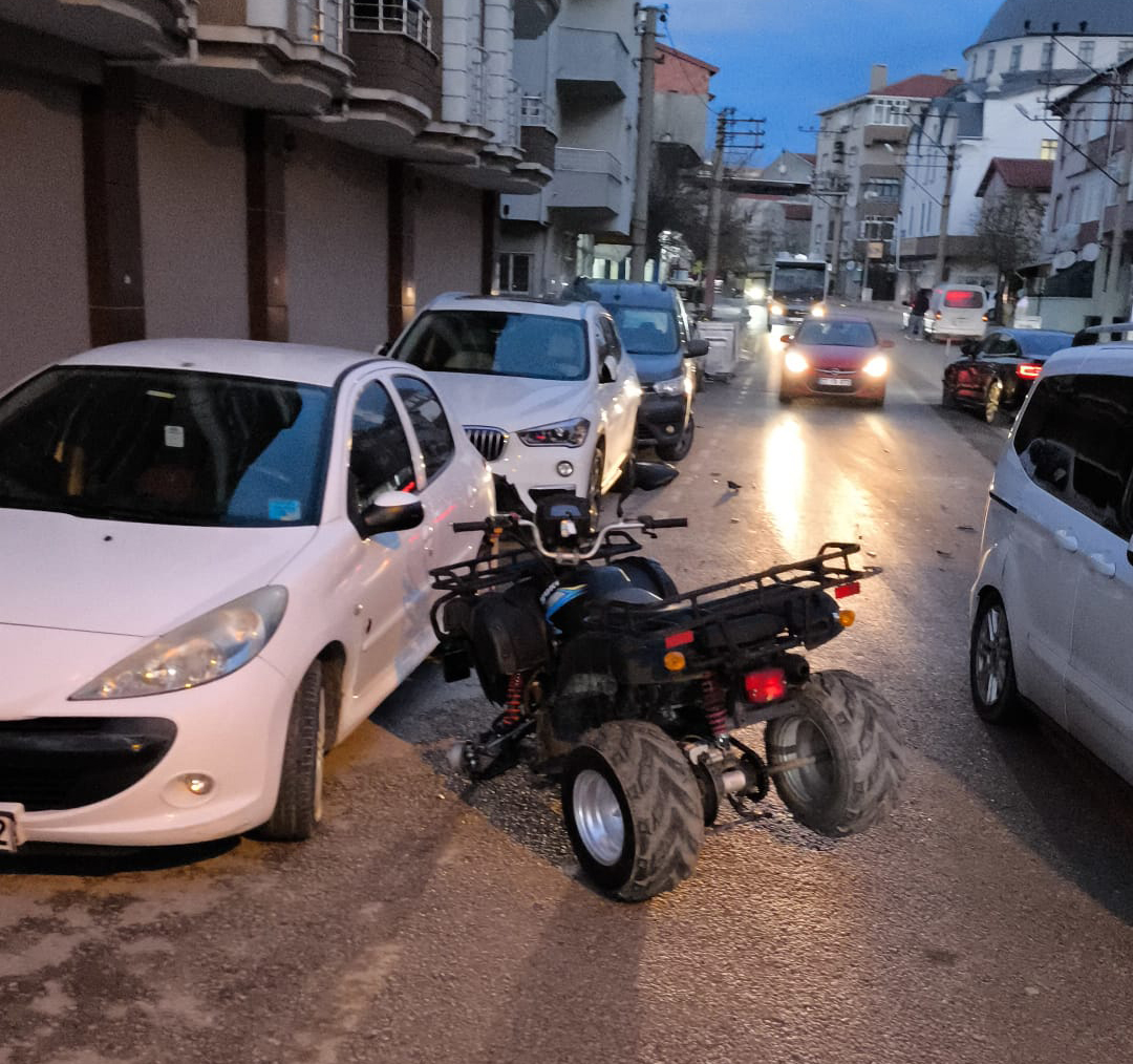 Kaza, sabah saatlerinde Mustafa Kemal Paşa Mahallesi Rasim Ergene Caddesi’nde meydana geldi. Çarşı merkezinden, Keşan Adalet Sarayı yönüne giden D.K. yönetimindeki ATV, sürücüsünün kontrolü yitirmesi sonucu karşı yönden gelen A.B. yönetimindeki askeri araca, ardından da park halindeki otomobile çarptı. Kazada, ATV sürücüsü D.K. yaralandı.