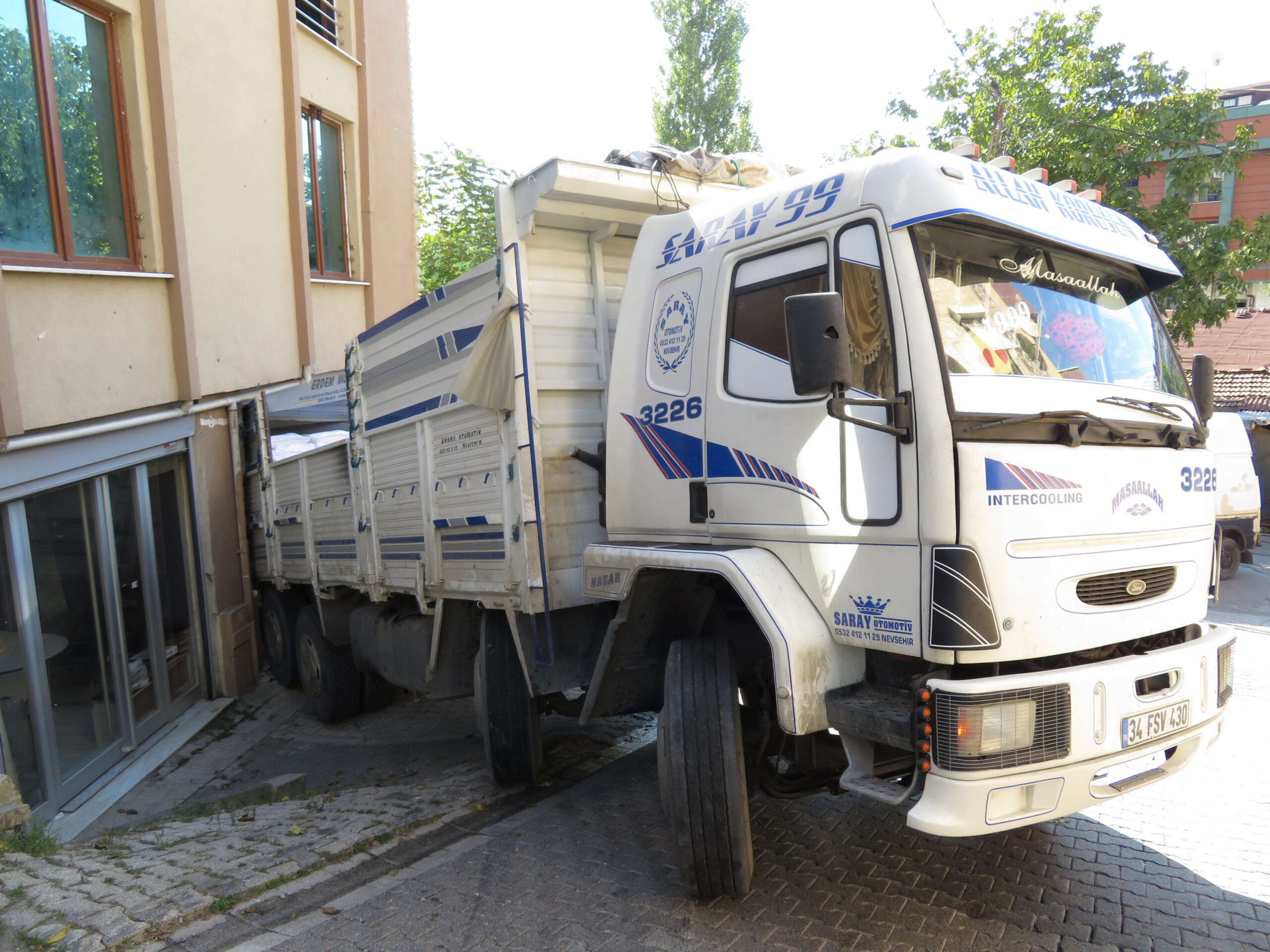 Öte yandan kazanın yaşandığı sokakta ‘TIR Çıkışı Yasaktır “ tabelası görüldü.