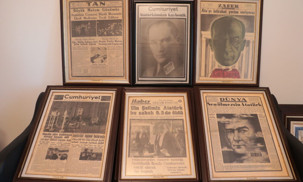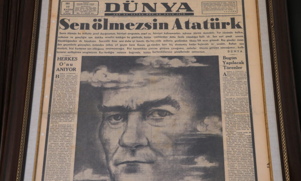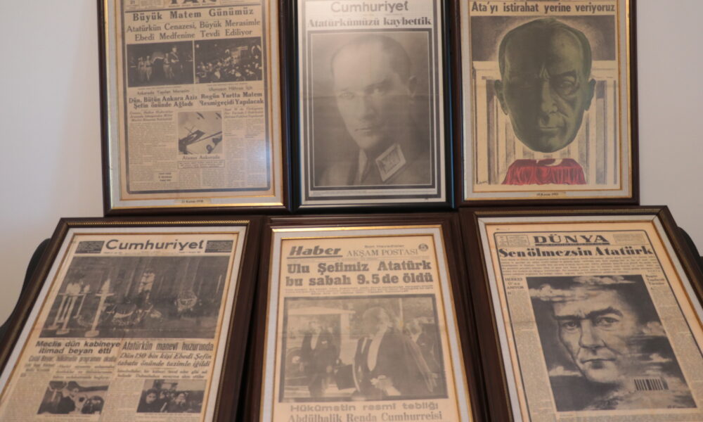 10 Kasım 1938de hayata gözlerini yuman Gazi Mustafa Kemal Atatürkün naaşı, 21 Kasım 1938de geçici olarak Ankara Etnografya Müzesine konuldu. 10 Kasım 1953te de Anıtkabire nakledildi. Atatürkün ölümüyle ilgili bu tarihler arasında ve özellikle 10 Kasımlarda dönemin önemli gazetelerinde yer alan manşetler, Ankara Etnografya Müzesindeki sergilenecek. Koleksiyoner Gürkan Gürbüze ait özel koleksiyon, 10 Kasım Pazar günü 10 Kasım Matemi temasıyla ziyarete açılacak. Sergi, 13 Kasım Salı gününe kadar ziyaret edilebilecek. Cumhuriyet, Dünya, Ulus, Zafer, Tan, Son Saat gibi dönemin önemli gazetelerine ait manşetlerden oluşan sergiyi, ziyaretçiler, Atatürkün sevdiği şarkılardan oluşan plak eşliğinde gezebilecek.