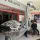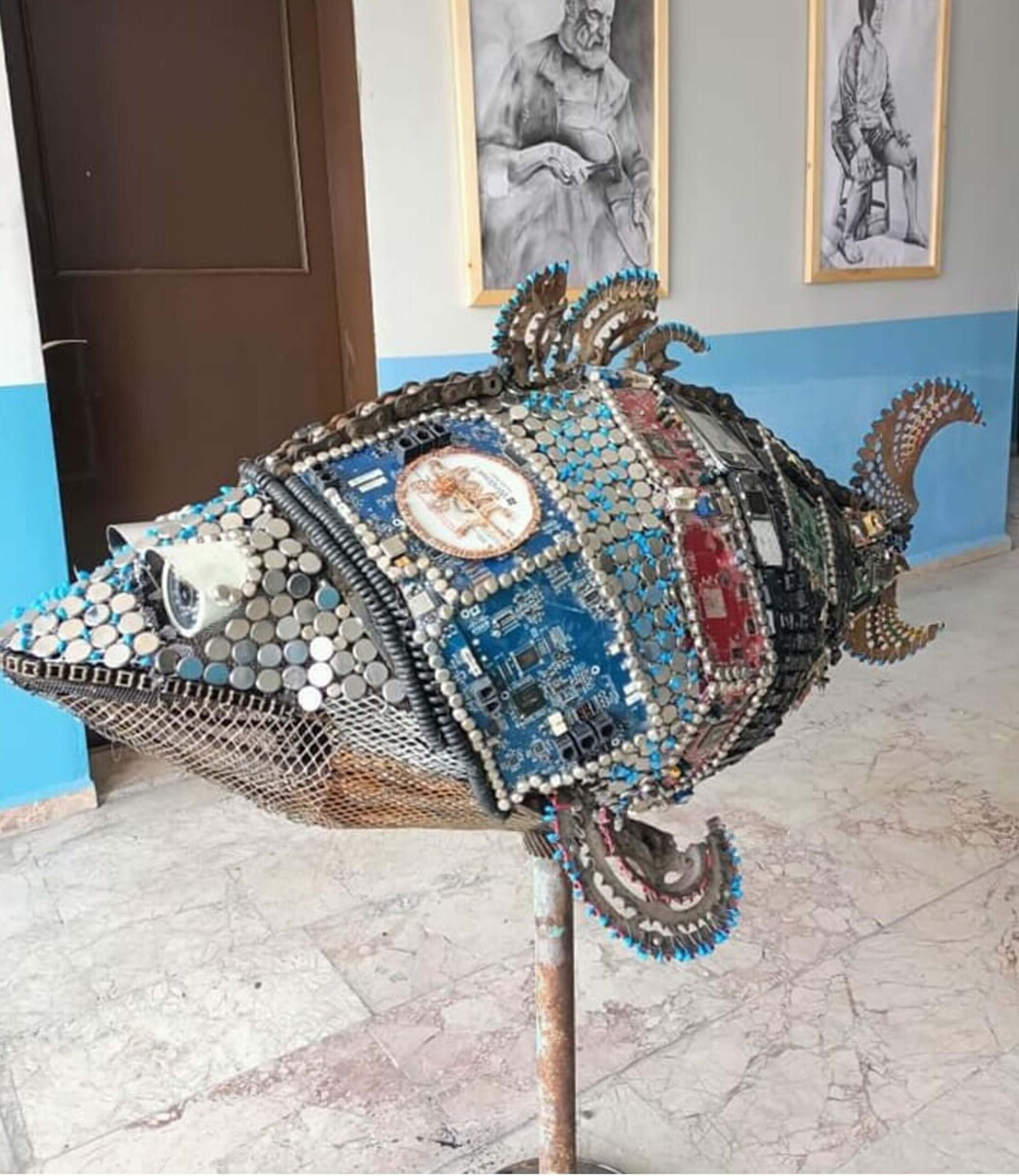 İzmir'in Kemalpaşa ilçesinde görsel sanatlar öğretmeni Ayvaz Nart, öğrencileriyle topladıkları atık malzemeleri atölyede heykele dönüştürdü .Fotoğraf:İzmir,(DHA)