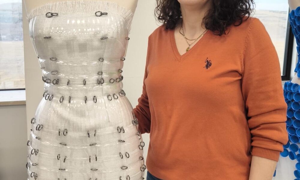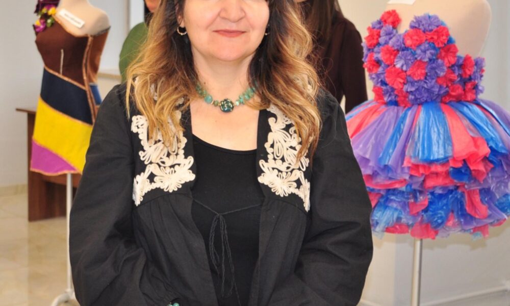 Güzel Sanatlar Meslek Yüksekokulu Moda Tasarım Bölümü Öğretim Görevlisi Şöhret Sel, amaçlarının sürdürülebilirlik kapsamında ürünler ortaya koymak olduğunu söyledi. Fotoğraf: Volkan KARABAĞ / Kars,(DHA)