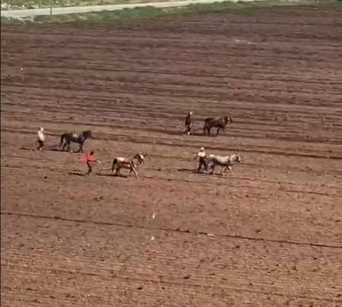 Atlara bağladığı sabanlarla yabani otları temizledi; tepkilere yol açtı