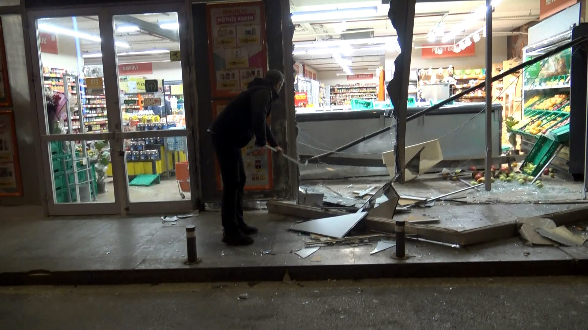 AVCILAR’da sürücünün kontrolünden çıkan otomobil bir markete girdi. Market camlarının kırıldığı olayda şans eseri ölen veya yaralanan olmadı.