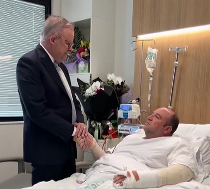 – Avustralya Başbakanı Albanesenin silahlı saldırıda saldırgana müdahale eden Ahmedi ziyaretinden görüntüler.