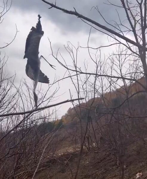 Boğazköy Barajı çevresinde doğa yürüyüşü yapan Rıfat Özkan, arkadaşıyla birlikte bir ağacın üzerinde uçmakta zorlanan kuşu fark etti. Kuşa yaklaşan Özkan, hayvanın ayağına dolanan olta misinasının ağacın dalına takıldığını görünce müdahale etti. Dal ile kuşu mahsur kaldığı ağaçtan indiren Özkan, ayağındaki misinayı kestiği mavi balıkçılı İnegöl Belediyesi Sahipsiz Hayvan Bakım ve Rehabilitasyon Merkezi ekiplerine teslim etti. O anlar cep telefonu kamerasıyla görüntülenirken, yaralı kuş tedaviye alındı.