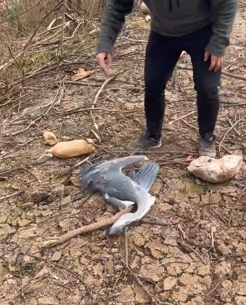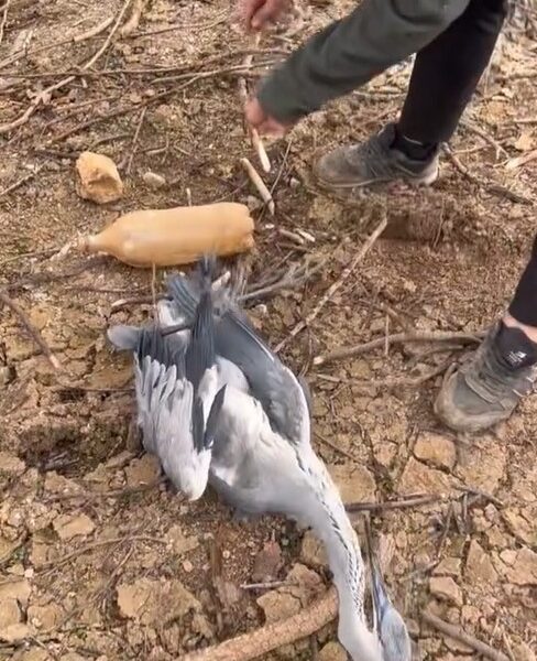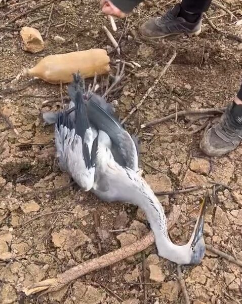 Ayağına misina dolanan mavi balıkçıl kuş kurtarıldı