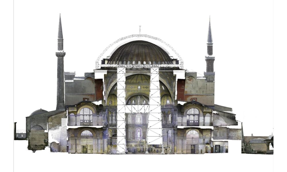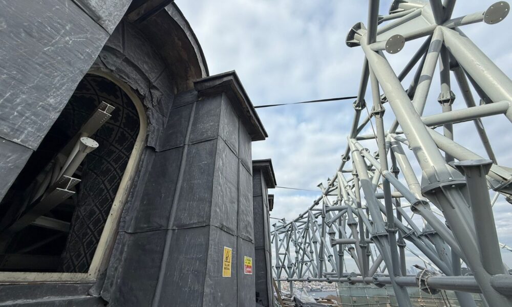 Ayasofya’da kubbe pencere sökümü ve çelik kiriş montajı başladı