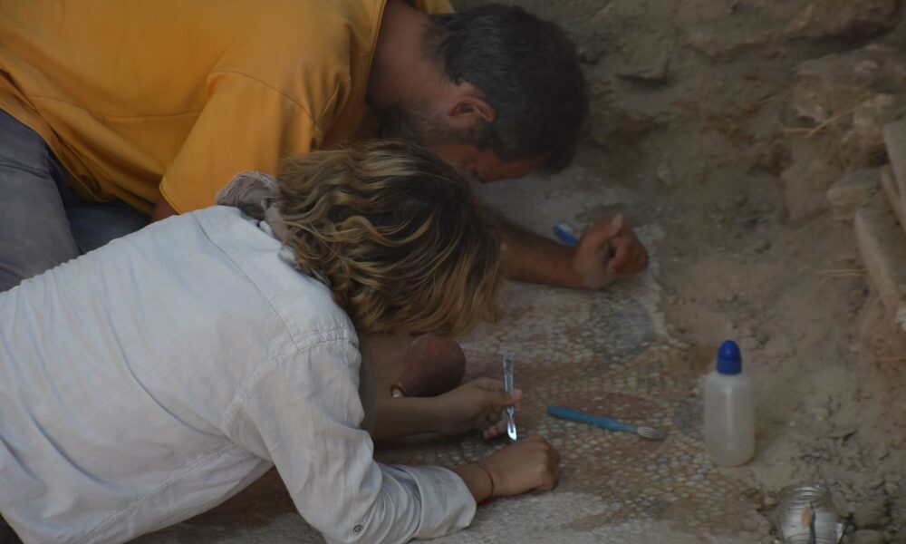 • İzmir'in Selçuk ilçesinde yer alan Efes'in ilk yerleşim yeri Ayasuluk Tepesi'ndeki kazı çalışmalarında St. Jean Kilisesi'nin güney haç kolunda erken dönemlere ait iki farklı zemin döşemesi bulundu. (Fotoğrafta, soldan sağa, Şermin İşletir, Doç. Dr. Sinan