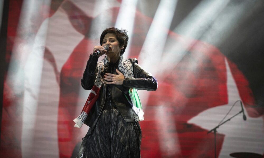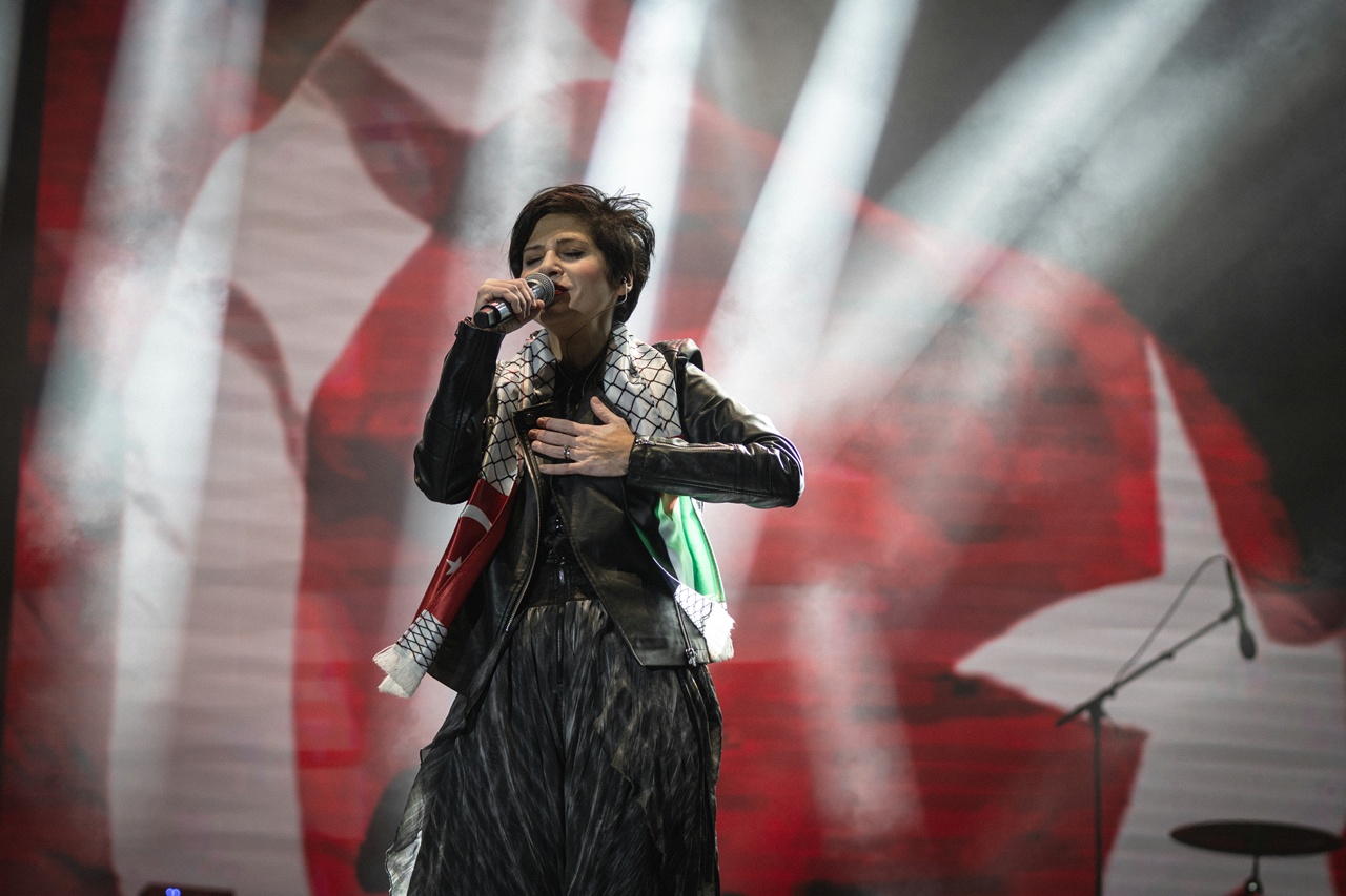 Konserinin bir bölümünde İsrail’in Gazze’ye yönelik saldırılarına tepki gösteren Aydilge, Filistin bayraklı atkı takarak, “Sadece eğlenmek ve keyiflenmek için müzik yapmıyoruz. Bazen üzüntülerimizi, acılarımızı paylaşmak, anlatamadıklarımızı anlatmak için müzik bizim şifamız oluyor. Ben 3-4 yıl önce Yalnızlık Masalı adında bir şarkı yazmıştım. Bu akşam da sizlerle dünyada yapayalnız bırakılmış, ne yazık ki yalnızlığa terkedilmiş, acıları görünmeyen sevgili Filistinli kardeşlerimiz için bu şarkıyı söylemek istiyorum. Filistinli kardeşlerimize, dualarımızı ve iyi dileklerimizi hep birlikte gönderelim” dedi.