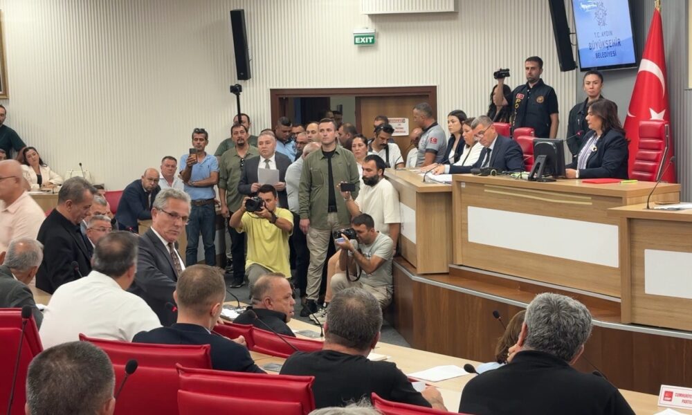 Aydın Büyükşehir Belediyesi Başkanı Özlem Çerçioğlunun başkanlığında bugün saat 18.00 sıralarında Meclis Toplantısı düzenlendi. Aydın İl Emniyet Müdürlüğü ekipleri toplantı nedeniyle yoğun güvenlik önlemi aldı. Meclis salonuna belediye başkanları, meclis üyeleri ve gazeteciler alındı. Meclise, Aydın Büyükşehir Belediyesi Başkanı Özlem Çerçioğlu başkanlık yaptığı toplantıda, 30 maddelik meclis gündemine CHP grubu red oyu verdi. Ayrıca, CHP grubu Çerçioğlunun konuşması sırasında masalara vurarak engellemeye çalıştı. Yaşanan gerginlikler nedeniyle Başkan Çerçioğlu, meclis toplantısını 14 Ekime erteledi. Meclis salonu polis tarafından güvenli bir şekilde boşaltıldı.
