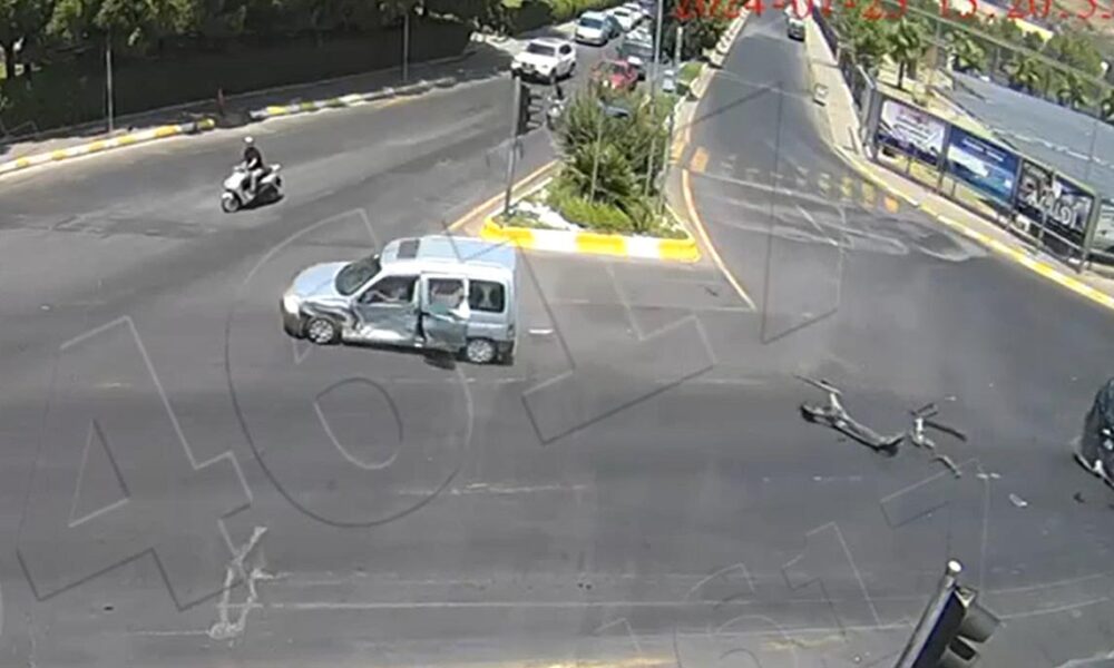 Öte yandan, kaza anı Kent Güvenlik Yönetim Sistemi kamerasına yansıdı. Görüntülerde hafif ticari aracın, kırmızı ışıkta geçen otomobil ile çarpıştığı anlar yer aldı.