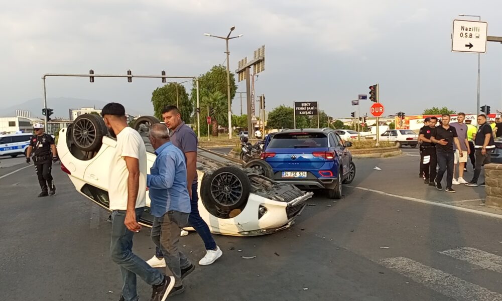 Kaza, saat 20.00 sıralarında Nazilli-Aydın kara yolu üzerinde Organize Sanayi Bölgesi Kavşağınde meydana geldi. T.Ö. yönetimindeki 34 FSE 534 plakalı otomobil, A.E. idaresindeki 09 R 9475 plakalı otomobille çarpıştı. Çarpmanın etkisiyle A.E. yönetimindeki otomobil takla atarak metrelerce sürüklendi. Kazada, otomobil sürücüleri A.E ve T.Ö ile T.Ö. yönetimindeki otomobilin içinde yolcu olarak bulunan N.Ö., D.Ö., ve A.Ö yaralandı. Kazayı gören vatandaşların ihbarı üzerine sağlık ve polis ekipleri sevk edildi. Yaralılar, sağlık ekiplerinin yaptığı müdahalenin ardından Nazilli Devlet Hastanesine götürüldü. Burada tedaviye alınan yaralıların sağlık durumunun iyi olduğu öğrenildi.