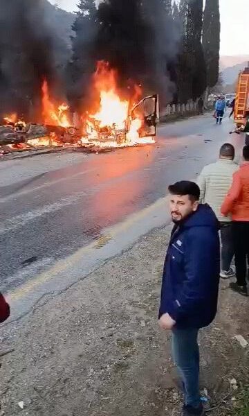 Kaza, saat 17.30 sıralarında Uzundere Mahallesi’nde meydana geldi. M.A. yönetimindeki 09 YM 985 plakalı otomobil ile karşı yönden gelen M.K. idaresindeki 09 Y 2919 plakalı minibüs çarpıştı. Çarpışmanın etkisiyle iki araç da alev aldı. Çevredekilerin ihbarı üzerine bölgeye sağlık, itfaiye ve jandarma ekipleri sevk edildi. İtfaiye ekiplerinin müdahalesiyle yangın söndürülürken, kazada hafif yaralandıkları belirlenen sürücüler sağlık ekiplerince hastaneye kaldırıldı.