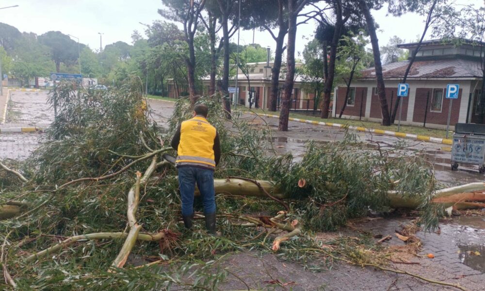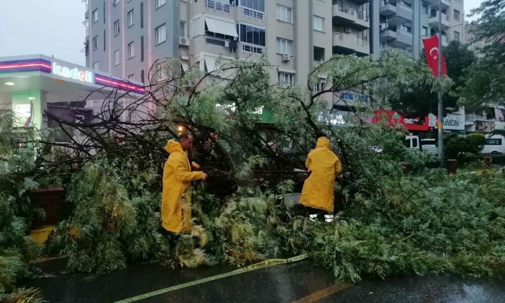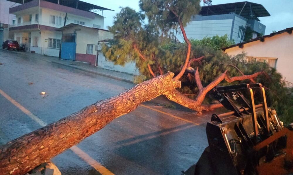 Aydın’da kuvvetli rüzgar 2 ilçede ağaçları devirdi