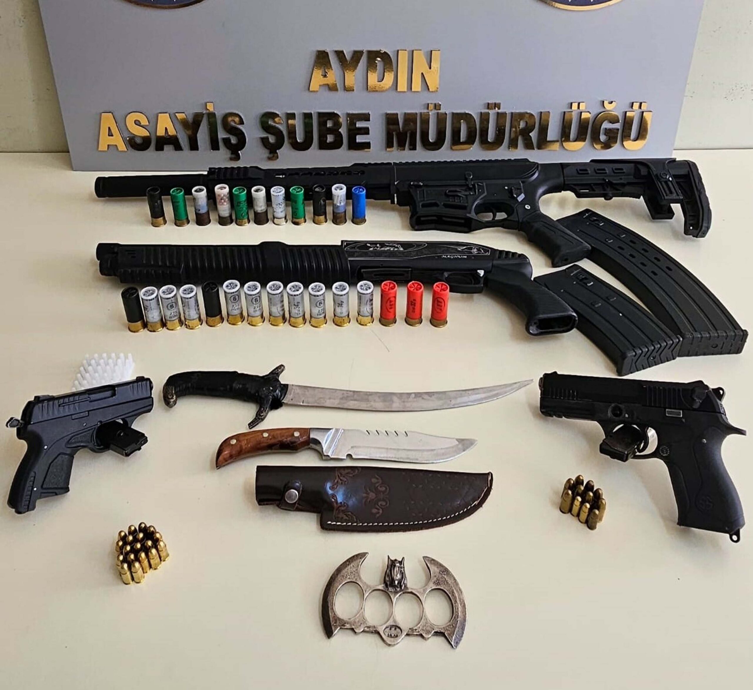 Aydın İl Emniyet Müdürlüğü Asayiş Şube Müdürlüğü ekipleri tarafından farklı tarihlerde sosyal medyada silah paylaşımı yaptığı belirlenen 5 adrese eş zamanlı operasyon düzenlendi. Yapılan aramalarda 2 otomatik ruhsatsız tüfek, 2 ruhsatsız tabanca, 51 adet mermi, 2 bıçak ve bir muşta ele geçirildi. Olayla ilgili M.E., G.E., K.E., Z.E., M.İ. ve S.K. gözaltına alındı. Soruşturma sürdürülüyor.