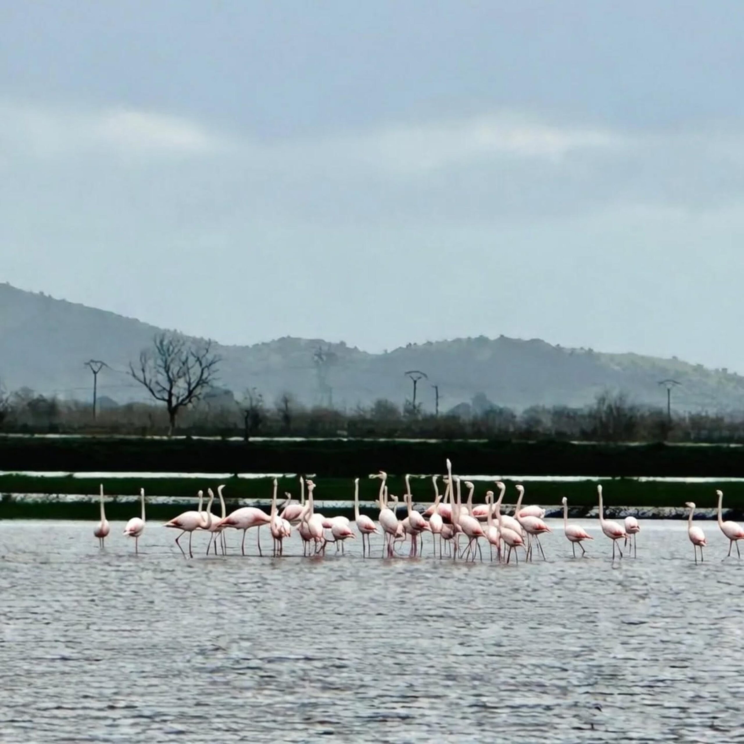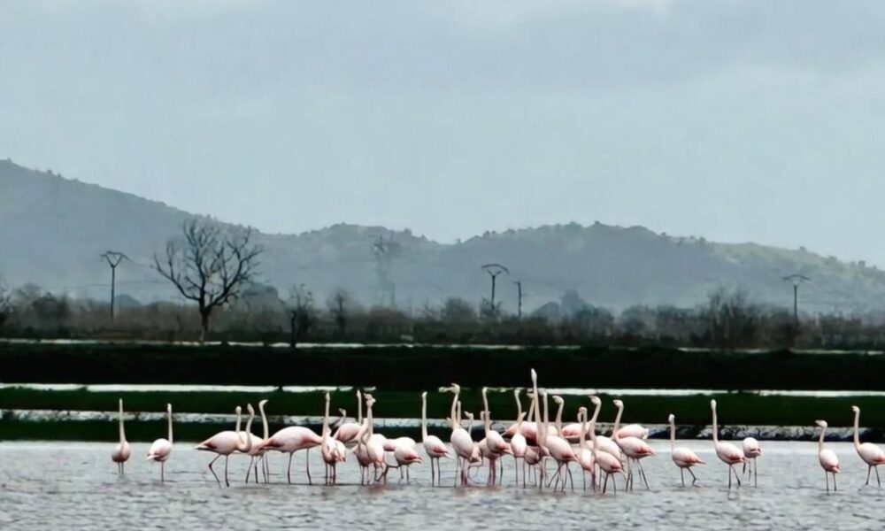 Aydın’da su altında kalan tarlalara flamingo sürüsü indi