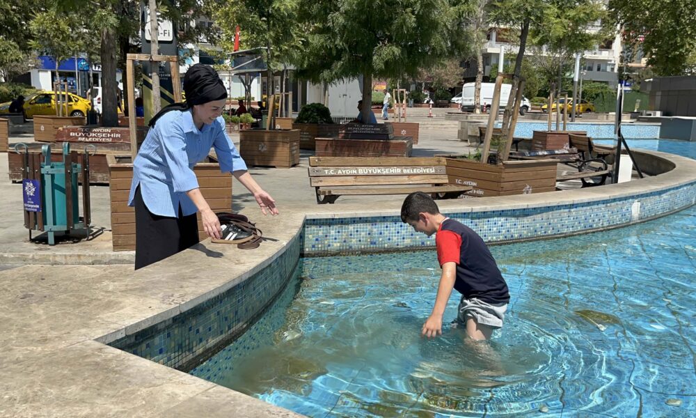 Türkiyenin en sıcak illerinden biri olan Aydında hava sıcaklıkları mevsim normallerinin üzerine çıktı, termometreler 44 dereceyi gösterdi. Aşırı sıcağın etkisinden korunmak isteyenler şemsiyeyle gezerken, kimileri de gölgelik alanları tercih etti. Bazıları ise Atatürk Kent Meydanında bulunan süs havuzunda elini yüzünü yıkayıp serinlemeye çalıştı.