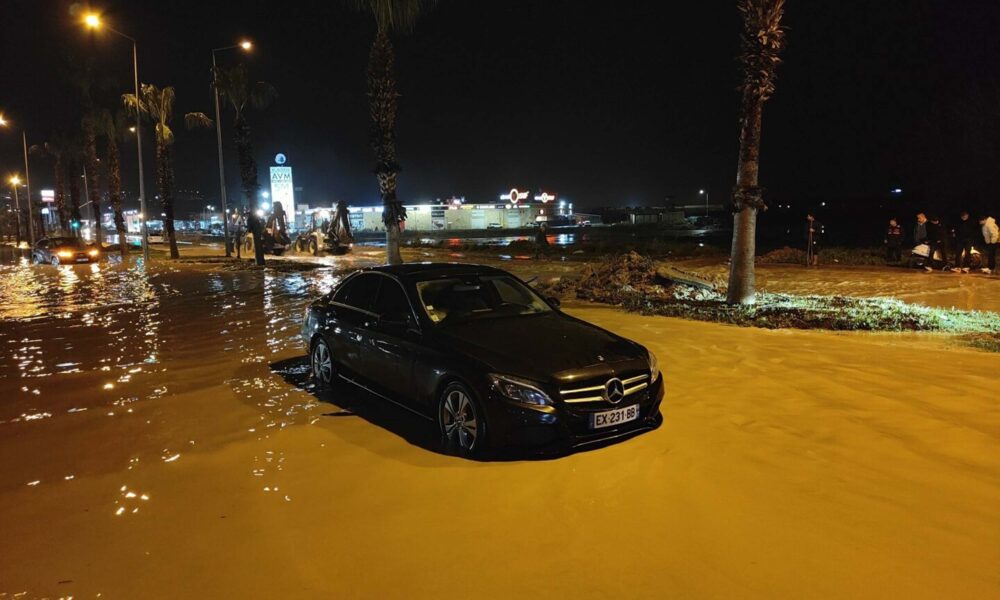 Kuşadası’nda dün sabah saatlerinden itibaren etkili olan sağanak ve fırtına yaşamı olumsuz etkiledi. Sağanak nedeniyle cadde ve sokaklarda rögarlar taştı, su birikintileri oluştu. Sürücüler göle dönen yollarda ilerlemekte zorluk çekti. Trafikte aksamalar yaşandı. İlçe genelinde zaman zaman etkili olan kuvvetli fırtınada ise çok sayıda ağaç ve seyyar satıcıların stantları devrildi. Güzelçamlı Mahallesinin sahil kesiminde bulunan bazı evlerin çatıları uçtu. Meteoroloji Genel Müdürlüğü verilerine göre de Aydın’da en fazla yağışın düştüğü ilçe Kuşadası olarak belirlendi. İlçenin Güzelçamlı Mahallesi’ne dünden bu yana metrekareye 93,2 kilogram yağış düştü.