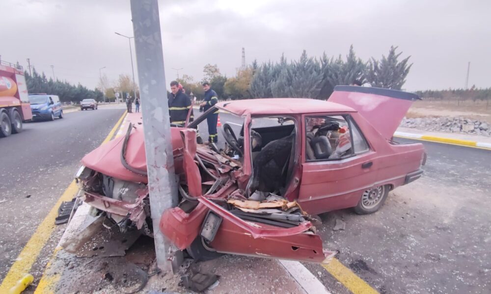 Aydınlatma direğine çarpan otomobilin sürücüsü öldü, eşi yaralandı