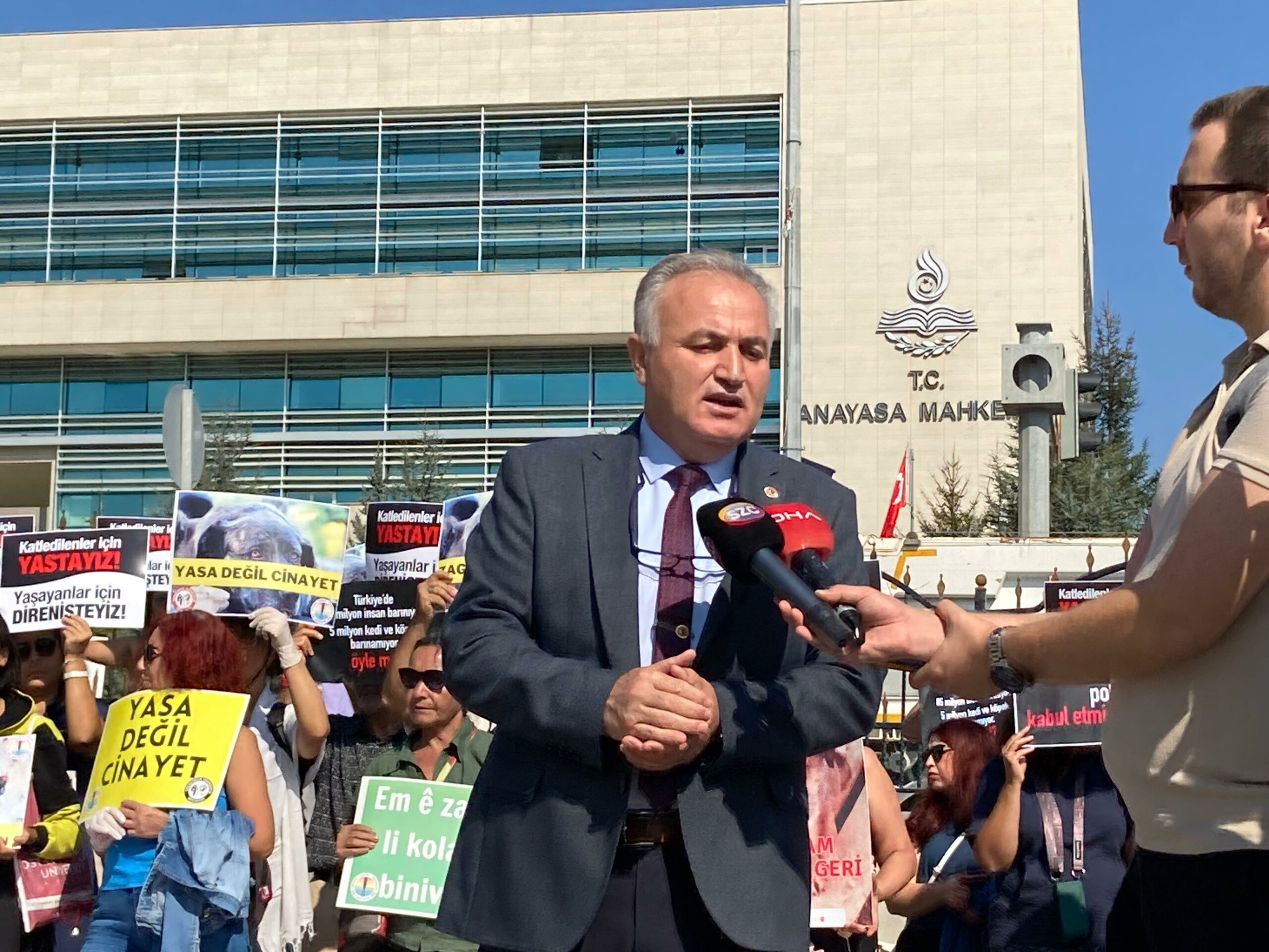 Ankara Barosu Başkanı Mustafa Köroğlu ise “İptali talep edilen 7527 sayılı yasa yürürlüğe girdiği 2 Ağustos 2024 tarihinden itibaren, yasanın gündeme alındığı 5 Eylül 2024 tarihine kadar kamu yararına aykırı olan, telafisi mümkün olmayacak sonuçlara yol açmış olup, bu konuda baromuza yapılan ihbarlar ve haricen tespit ettiğimiz vakalar Anayasa Mahkemesinin dikkatine sunulmuştur. Bu belgelere göre bu sürede bilinen 100den fazla hayvan ölmüştür. Yasanın niçin esas yönünden anayasaya aykırı olduğunu tespit ettiğimiz neticeler meydana gelmiş ve yasa yürürlükte kaldığı her geçen gün, bu neticelerin meydana geleceği öngörülmektedir. Yüzlerce hayvanın ölmesi ve eziyete maruz kalmasının önlenmesi, ancak ve ancak Anayasa Mahkemesinin yürütmeyi durdurma kararı vermesi ile mümkün olacağından, anayasaya açıkça aykırı olan ve iptali istenen hükmün iptal davası sonuçlanıncaya kadar yürürlüğünün de durdurulması gerektiği kanaatine vardığımızı saygıyla bildiririz” diye konuştu.