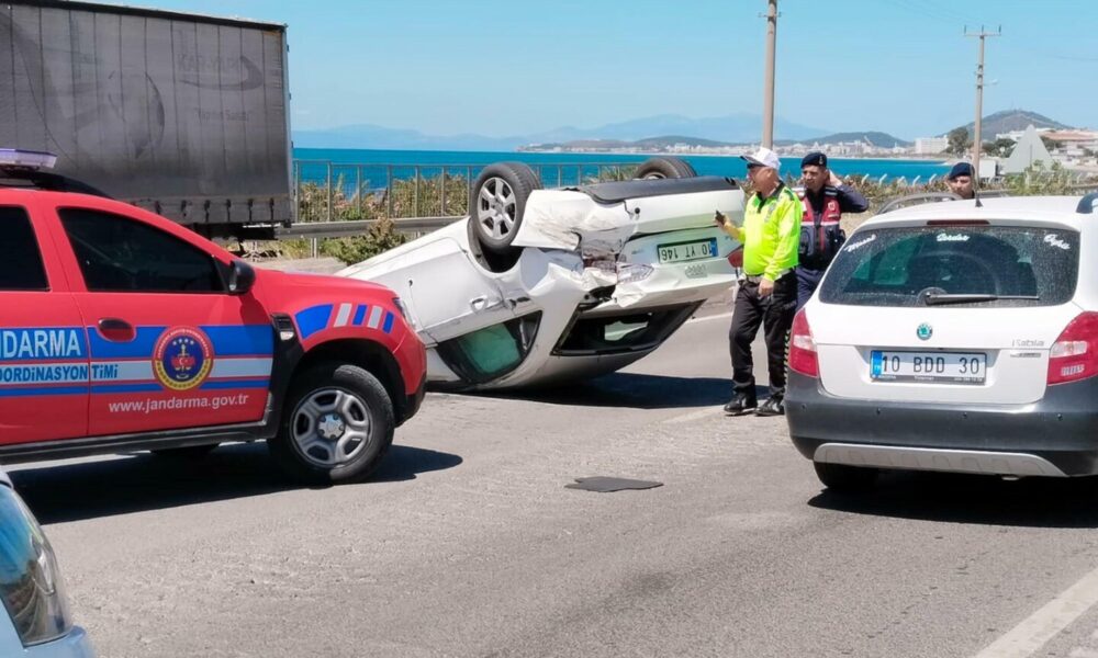 Kaza, Çanakkale ile İzmiri birbirine bağlayan E-87 karayolunun Ayvalıkın Küçükköy Mahallesi yakınlarında meydana geldi. İzmir istikametinden Çanakkaleye seyir halinde olan H.M. (74) idaresindeki 34 ZG 805 plakalı otomobil ile önünde giden H.İ. (56) idaresindeki 26 BR 792 plakalı otomobilin arasına makas atarak girdiği öne sürülen H.K. (35) yönetimindeki 10 YT 146 plakalı otomobil, iki araca çarparak, takla attı. Kaza sırasında savrulan H.M. yönetimindeki otomobil, A.K. idaresindeki plakası öğrenilemeyen motosiklete çarptıktan sonra alev alıp yanmaya başladı.