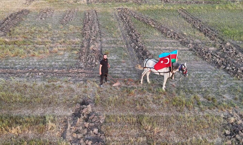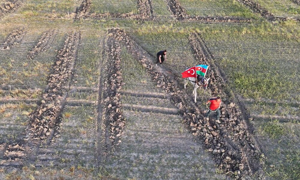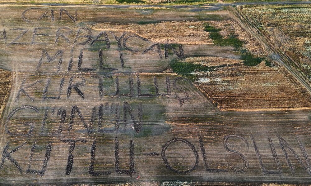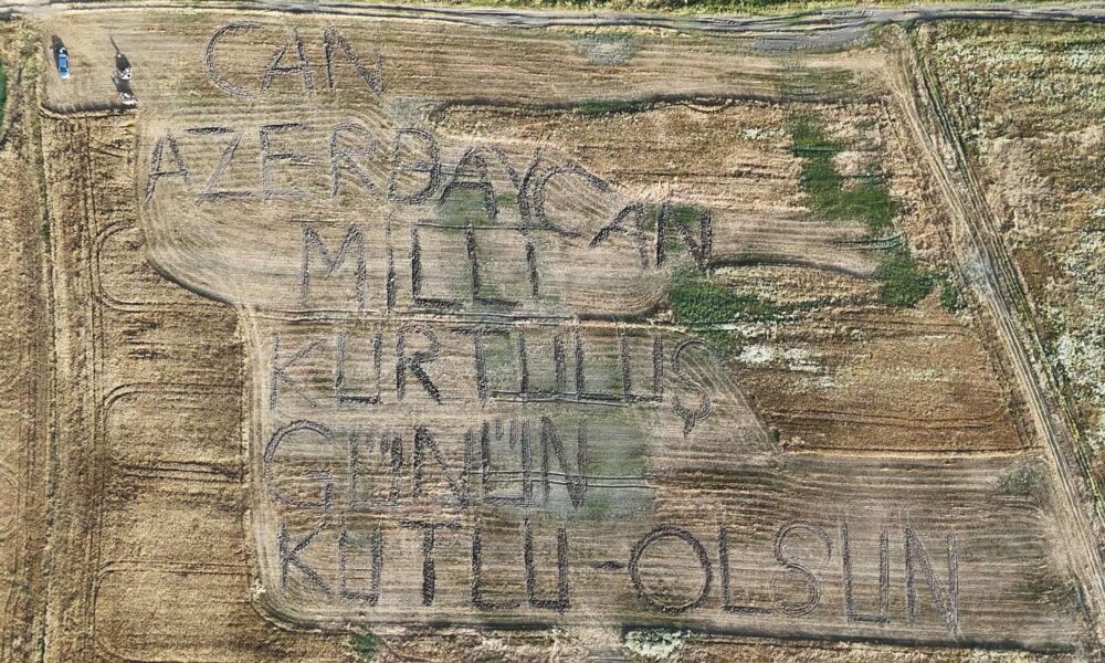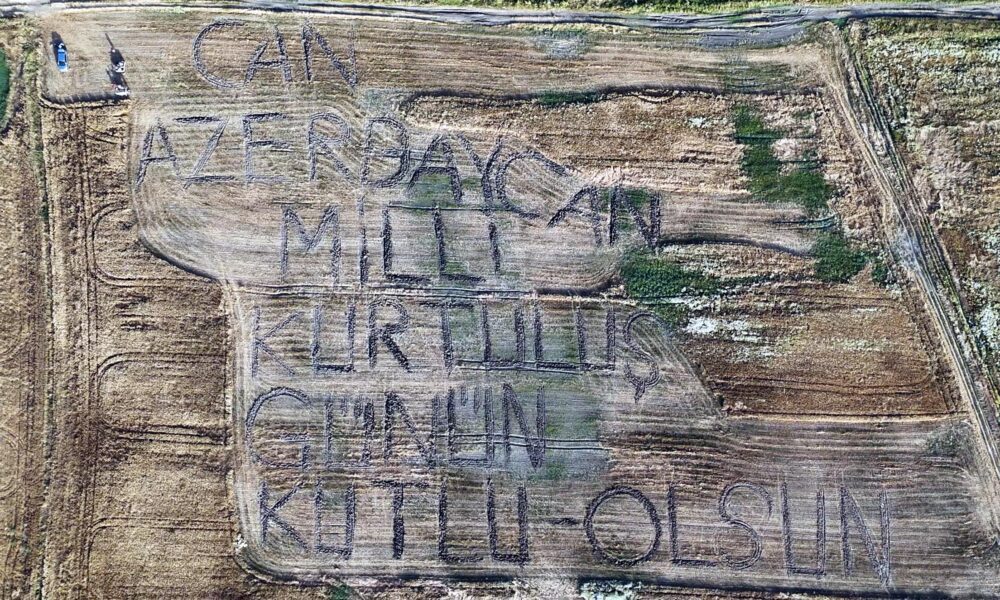 Azerbaycan’ın Milli Kurtuluş Günü’nü tarlaya yazdıkları yazıyla kutladılar