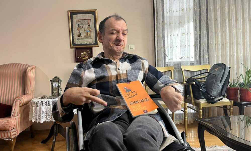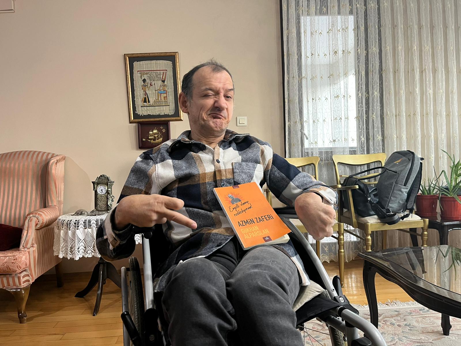 • 'Serebral palsi' hastalığı nedeniyle fiziksel engelli olan Gökhan Alparslan (57), 'Azmin Zaferi' isimli kitabında yaşam öyküsünü anlattı. Fotoğraf: Ankara, (DHA)