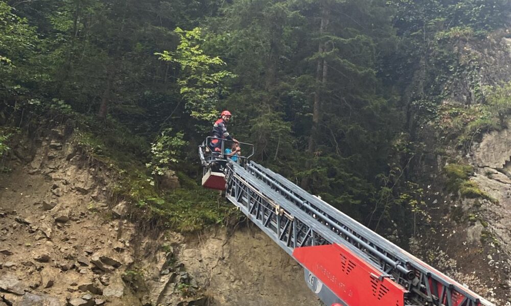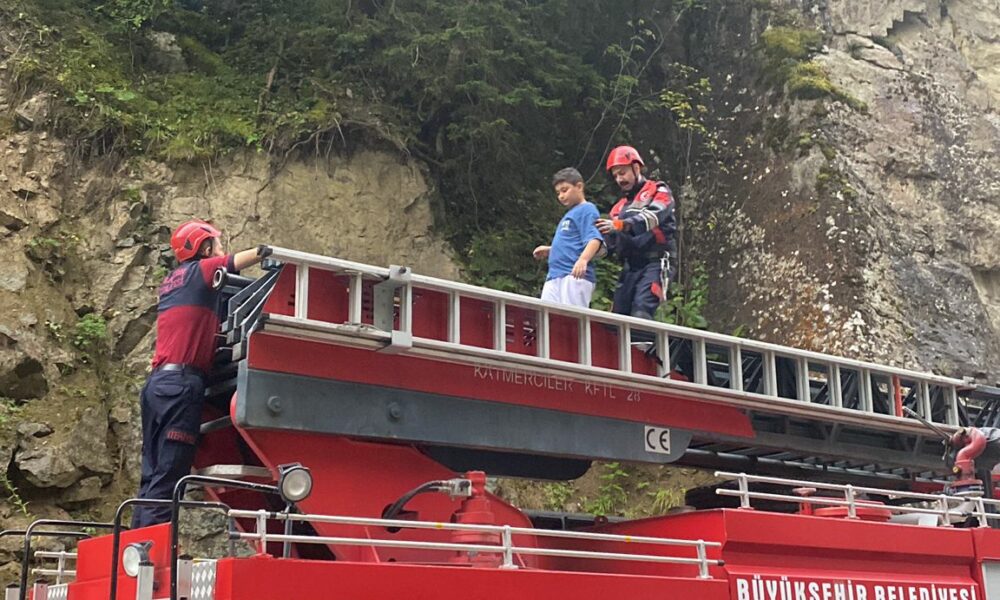 İlçeye bağlı Altındere Mahallesinde manzarayı havadan görüntülemek isteyen N.M. ile oğlu O.K.M.nin uçurdukları dron, ormana düştü. Dronu bulmak için ormana giren baba-oğlu, kayalıklarda mahsur kaldı. İhbarla harekete geçen itfaiye ekipleri, bölgeye intikal ederek kurtarma çalışması başlattı. İtfaiye ekipleri, kayalıklardaki baba ve oğluna itfaiye merdiveniyle ulaştı. Ekipler, N.M. ve O.K.M’yi güvenli şekilde bulundukları yerden kurtardı. Baba, oğlu ve yakınları, kendilerine ulaşarak yardım eden itfaiye personeline teşekkür etti.