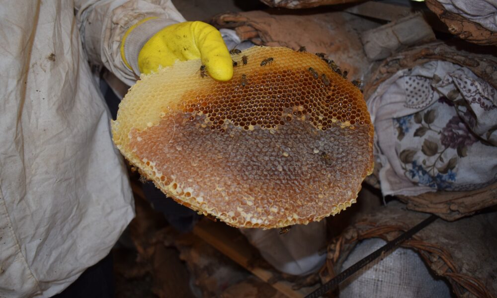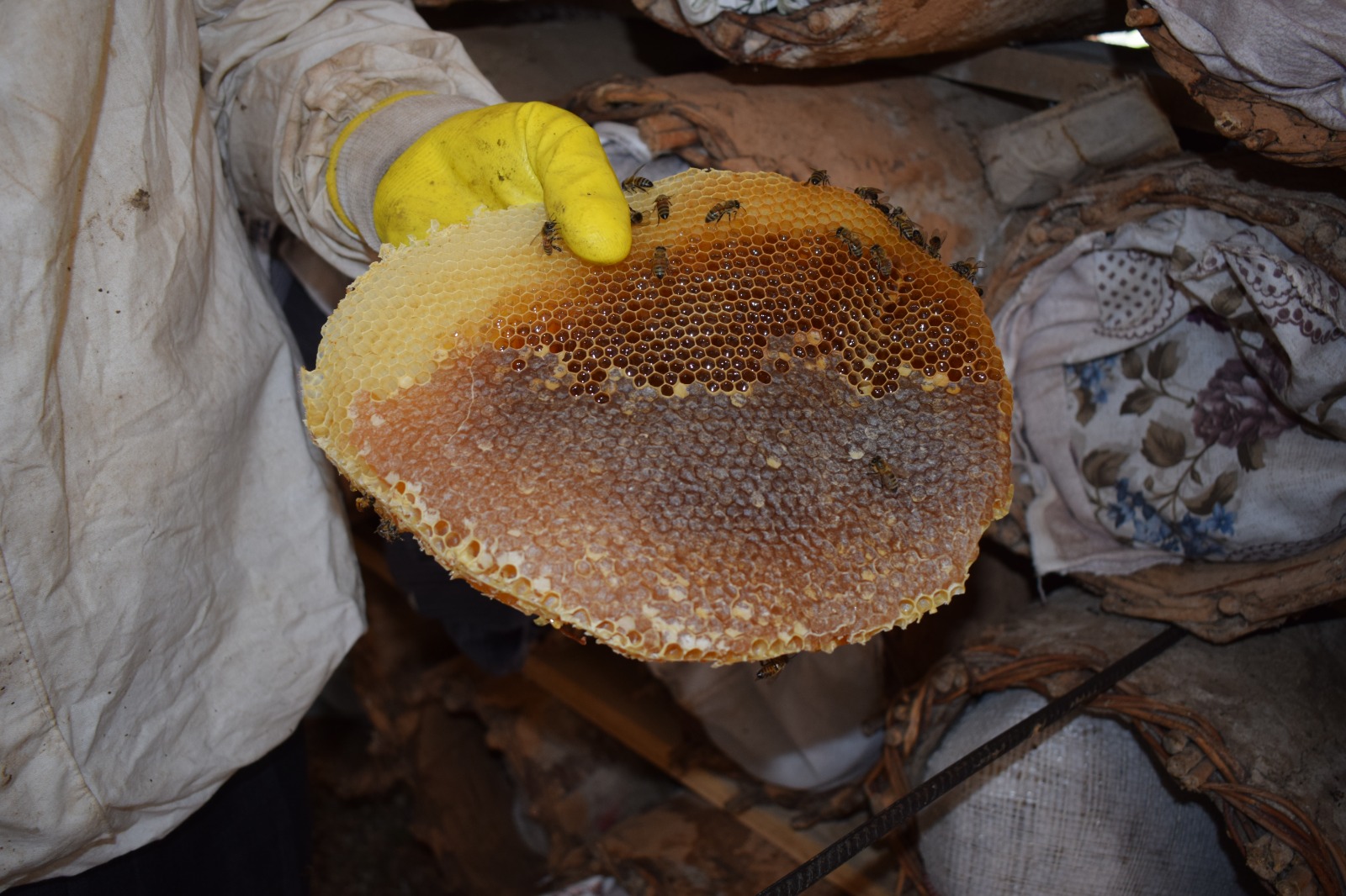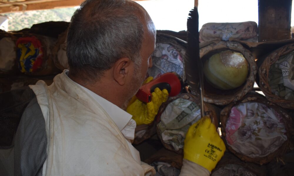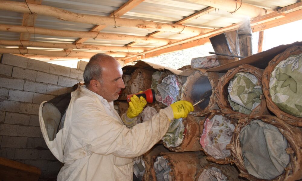 Babasının yaptığı kara kovan arıcılığı, zorlu arazi koşullarında 35 yıldır sürdürüyor