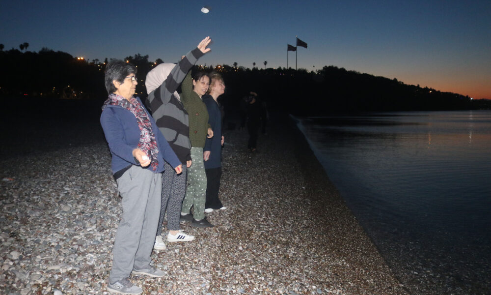 Arkadaşlarıyla Konyaaltı sahiline gelen Banu Çalışkan, “Genel ritüelimiz. Bu tür şeylere toplumca inanıyoruz. Biz de yaptık Allah kabul etsin. İlk ışıklarda gün doğmadan buraya sahile geldik. Sağlık, sıhhat ve mutluluk diledik” dedi.