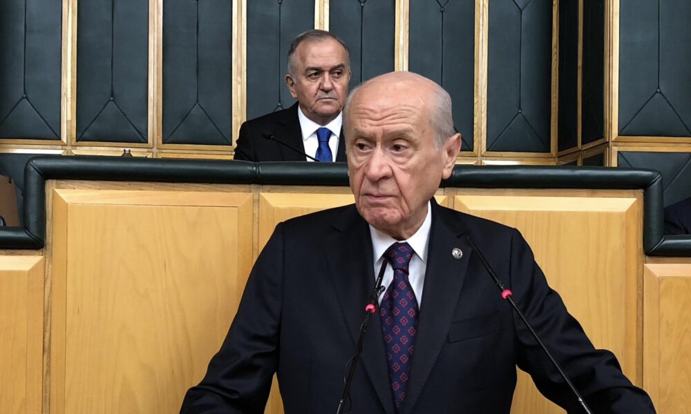 Bahçeli, Terörsüz Türkiye sürecinde temiz bir dil kullanılmasının önemine değinerek, “Empati kurmak, erdemli olmak, meseleleri geniş bir açıyla ele almak öncelikle siyasi partilerin, sonra da herkesin müşterek sorumluluğudur. Birbirimizi suçlayarak, birbirimize düşman muamelesi yaparak kin ve öfkelerimizi yarıştırmak Türkiyeye yapılabilecek en büyük kötülüktür. Aklıselim ve kalbiselim çizgiden savrulmanın bedeli herkes için ağır olacaktır. Terörsüz Türkiye hedefinde adım adım sona yaklaşılmaktadır. Mecliste kurulan komisyon çalışmalarını kısa süre içinde ikmal edecektir. Bizim meselemiz, Türkiye’nin yeni bir kurtuluş mucizesiyle zirveye tutunmasıdır. Bizim meselemiz vatandır, millettir, devlettir, al bayrağın altında 86 milyonun tek yürek olmasıdır” dedi.