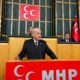 Bahçeli, Türkiye’nin iç cephesini zayıflatmaya yönelik her söylem, her eylem, her kışkırtmanın doğrudan doğruya milli güvenliği hedef aldığını belirterek, “Türkiye Cumhuriyeti, muhalefetin günübirlik polemikleriyle, ucuz siyasi hesaplarla, sığ tartışmalarla, sorumsuz açıklamalarla yönetilebilecek bir ülke değildir. Hele hele böylesine hassas bir dönemde; devletin yanında durmak yerine karşısında saf tutan, milli meselelerde dış mihrakların aklıyla konuşanların millet vicdanında karşılığı olmayacaktır. Her geçen gün yeni bir skandal habere konu olan CHP’li belediyeler, maşeri vicdanı rahatsız etmektedir. Birbiri ardına ortaya saçılan rüşvet, irtikap iddiaları hukuki bir mesele olmaktan çıkmış, siyasi yozlaşmanın CHP’nin her kademesine sirayet ettiğinin açık bir göstergesi haline gelmiştir. Bu vahim tablo, kök salmış bir çarpık zihniyetin, çürümüş bir siyasi anlayışın ve yozlaşmış bir yönetim yapısının CHP’ye egemen olduğu izlenimi vermektedir. Şehrin emini olması gerekenler ne hazindir ki emanete hıyanet etmiş yozlaşmanın zirvesine çıkmışlardır” diye konuştu.