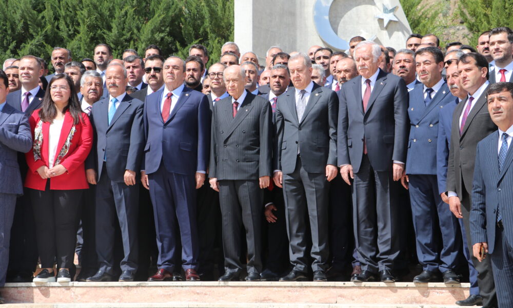 Bahçeli, yönetimde istikrarın sağlandığını vurgulayarak, “Sayın Cumhurbaşkanımız başkanlığında Cumhurbaşkanlığı Kabinesi görevinin başındadır. Cumhurbaşkanlığı Hükümet Sistemi müessirdir ve dört başı mamur şekilde çalışmaktadır. Hiç kimse kendisine güç vehmetmemeli, karanlık senaryolarla, sipariş talimatlarla, gizli tanık ifadeleriyle, üstlendiği görevi kötüye kullanmak suretiyle iç huzur ve barış ortamımızı zedelemeye kalkışmamalıdır. Eğer bu kalkışma olursa, buna cüret edenlerin başı mutlak surette ezilmeli, bağ ve bağlantılarının, devlet, toplum ve medya içindeki uzantılarının tasfiyesi, tecridi ve tecziyesi acilen sağlanmalıdır. Mevzubahis konu, devlet ve milletin istikbali ise hiç kimsenin gözünün yaşına bakılmamalıdır. Terörist Demirtaş’ın, Sorosçu Kavala’nın ve Gazze politikasının rövanşını almak amacıyla iç işgal cephesinde konuşlananları dürte dürte harekete geçirenlere meydanı boş bırakmayacağız. Dahası, onlara dünyanın kaç bucak olduğunu da göstereceğiz. Etki ajanlarına, emperyalizmin kuklalarına, dış güçlerin operasyon elemanlarına asla taviz vermeyeceğiz. Bürokratik oligarşinin altyapısını kurmak için eylem ve emel birlikteliği içinde olan çevrelerin oyunlarına tepkisiz durmayacağız. Statüko özlemi çekenlere, demokrasi karşıtlarına, milli iradeye pranga vurmak için hava koklayanlara sessiz kalmayacağız. FETÖ ve FETÖ benzeri yapıların devleti zehirleyip, devlet içinde feodal ve imtiyazlı alanlar oluşturmalarına kesinlikle müsaade etmeyeceğiz. Bu süreçte Sayın Cumhurbaşkanımızın yanındayız, devlet ve milletle ortak kaderin ta merkezindeyiz” dedi.