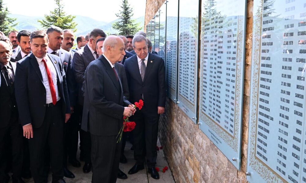 MHP Genel Başkanı Bahçeli, Ankaranın Kızılcahamam ilçesinde partisinin Belediye Başkanları İstişare ve Değerlendirme Toplantısına katıldı. Bahçeli, toplantı öncesi Ülkücü Şehitler Anıtını ziyaret etti. Bahçeli, dua ettikten sonra anıta karanfil bıraktı.