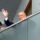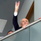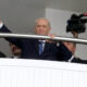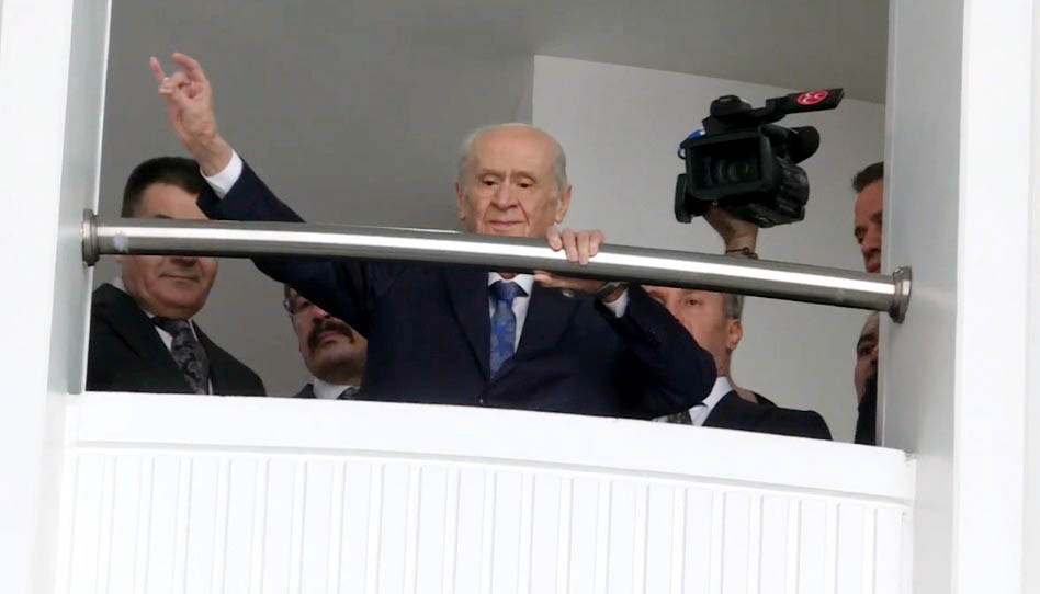 MHP Genel Başkanı Devlet Bahçeli, 2 ayı aşkın sürenin ardından genel merkezdeki mesaisine başlarken partilileri bozkurt işaretiyle selamladı. Fotoğraf: Ankara, (DHA)