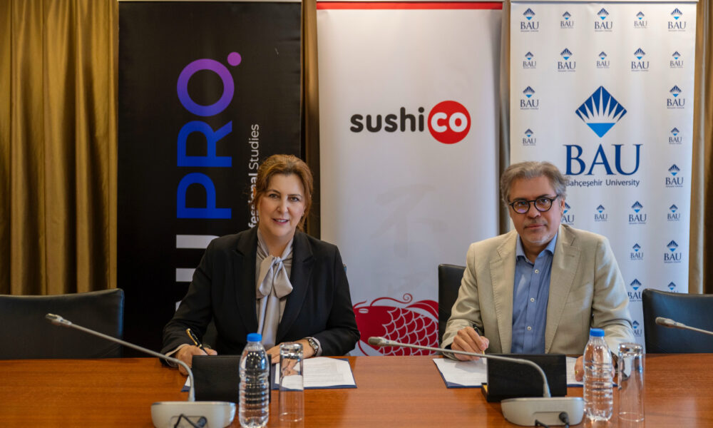 Bahçeşehir Üniversitesi, Uzak Doğu restoran zinciri SushiCo önemli bir iş birliğini hayata geçirdi. Bahçeşehir Üniversitesinin Beşiktaştaki Güney Kampüsünde düzenlenen iş birliği imza törenine, BAU Rektörü Prof. Dr. Esra Hatipoğlu ve SushiCo Kurucu Ortağı Baran Dumanoğlu ile tarafların üst düzey yetkilileri katıldı. BAU Rektörü Prof. Dr. Esra Hatipoğlu, anlaşma ile ilgili yaptığı konuşmada “Bahçeşehir Üniversitesi olarak, eğitim programlarımızın sektörün öncüleri ile doğrudan temas halinde daha da zenginleştiğine inanıyoruz. Bu bakış açısıyla kurduğumuz BAU Professional (BAU PRO) çatısı altında, sektörel iş birliklerine büyük önem veriyor; farklı alanlarda mesleki yaşamın dinamiklerine hazırlayan programlar geliştirmeye özen gösteriyoruz. SushiCo ile gerçekleştirdiğimiz bu stratejik iş birliği, gastronomi alanındaki akademik birikimimizi sektörün güçlü temsilcilerinin deneyimiyle buluşturmaktadır. Uzak Doğu mutfağının derinliğini ve kültürel zenginliğini içeren bu eğitim programı, katılımcılara mutfak deneyimi ile birlikte vizyon, disiplin ve uluslararası standartlarda kariyer yolculuğunun kapısını aralamaktadır. Sektöre kalıcı değerler kazandıracak, yenilikçi, donanımlı ve vizyon sahibi şefler yetiştirmeyi sürdüreceğimiz bu iş birliği ile; teorik bilgiyi çağdaş uygulama ile birleştirerek yeni nesil şef adaylarımıza uluslararası alanda öncü donanımlar kazandırmayı amaçlıyoruz. Süreçte emeği geçen tüm ekip arkadaşlarıma teşekkür ediyor, nice güzel projelerde buluşmayı diliyorum” dedi.