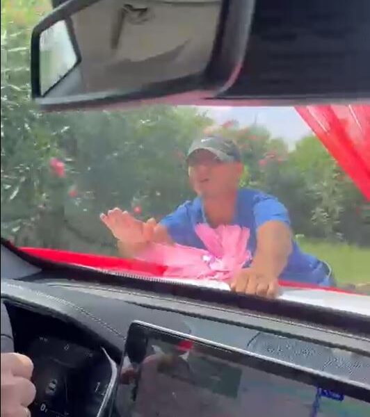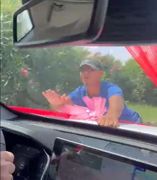 Bahşiş almak için gelin aracının kaputunda metrelerce ilerledi; o anlar kamerada
