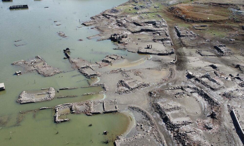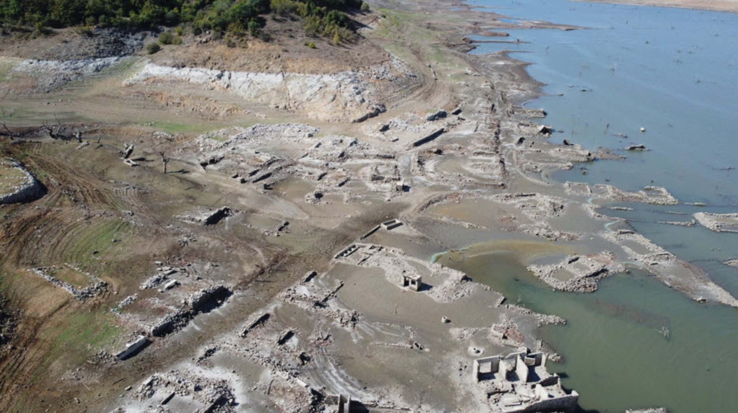 Bakacak Barajı’nda su seviyesi düştü, köyün kalıntıları gün yüzüne çıktı