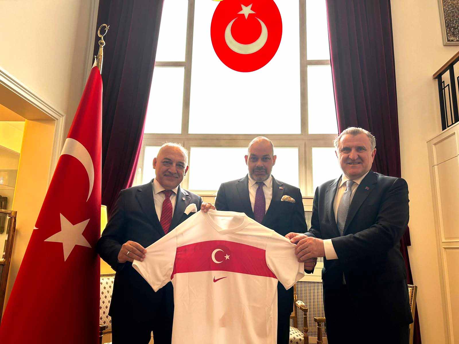 Türkiye Futbol Federasyonu Başkanı Mehmet Büyükekşi, misafirperverlikleri nedeniyle Varşova Büyükelçisi Rauf Alp Denktaşa teşekkür ederek, Gençlik ve Spor Bakanı Osman Aşkın Bak ile birlikte A Milli Takım forması takdim etti.