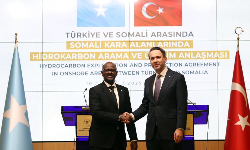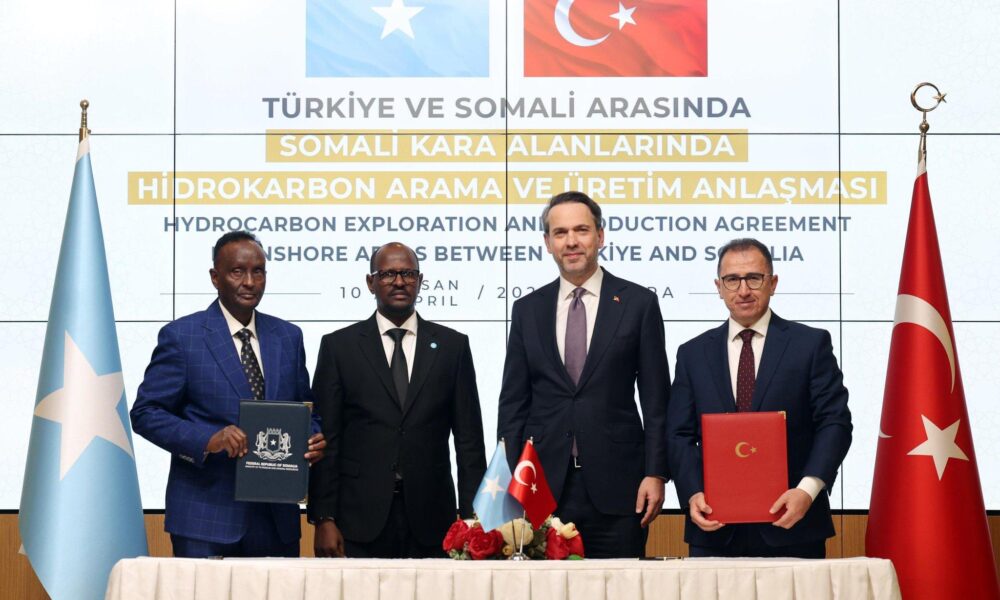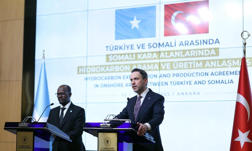 Enerji ve Tabii Kaynaklar Bakanı Alparslan Bayraktar, Somali Petrol ve Maden Kaynakları Bakanı Dahir Shire Mohamed ile bakanlıkta, Türkiye ve Somali Arasında Somali Kara Alanlarında Hidrokarbon Arama ve Üretim Anlaşması İmza Törenine katıldı. Bakan Bayraktar, Somali ve Türkiye arasında 7 Mart 2024te petrol ve doğal gaz alanında iş birliği anlaşması imzalandığını belirterek, “Bu anlaşma kapsamında milli petrol şirketimiz Türkiye Petrolleri, Somali hükümetiyle beraber özellikle Somalinin offshore (açık deniz) sahalarında proje geliştirmek, oradaki petrol kaynaklarının aranması için 24 Temmuz 2024 tarihinde bir üretim anlaşması, üretim paylaşım anlaşması imzaladık. Üç offshore sahasında imzalanan bu anlaşma kapsamında da yine çok kısa bir süre içerisinde, geçtiğimiz yıl ekim ayında biz Oruç Reis sismik gemisini Somaliye gönderdik. Oruç Reis sismik gemimiz, oradaki faaliyetlerine halen devam ediyor” dedi.