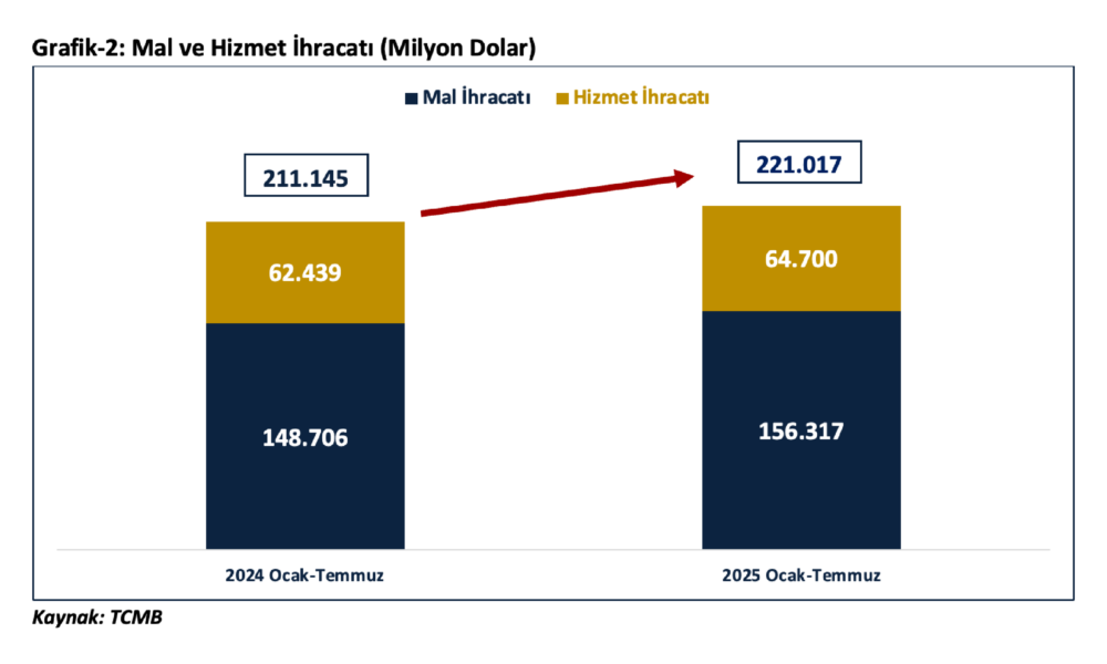 “2025 yıl sonu 390 milyar dolarlık mal ve hizmet ihracatı hedefine sadece 1 milyar dolar kaldı. Mal ihracatı temmuz ayı itibariyle aylıkta 25 milyar dolarla, yıllıkta ise 269,4 milyar dolar ile rekor seviyelerde gerçekleşti. Hizmet ihracatı güçlü seyrini devam ettirerek, 2025 yılı Temmuz ayında yıllıklandırılmış bazda bir önceki yılın aynı ayına göre yüzde 6,9 oranında artarak 119,5 milyar dolara ulaşmıştır. Seyahat gelirlerimiz 2025 yılı Temmuz ayında yıllıklandırılmış bazda 58 milyar dolar, taşımacılık gelirlerimiz ise 41,3 milyar dolar olarak gerçekleşmiştir. Zayıf dış talep, tarife artışlarının yarattığı belirsizlikler, yakın coğrafyamızda süregelen savaşlar, iç karışıklıklar ve gerilimlere rağmen hem mal hem de hizmetlerde ihracatımız artış eğilimini sürdürmektedir. Bu olumlu gelişmeler sayesinde cari işlemler açığı, tarihsel ortalamaların altında seyretmeye devam etmekte olup, Orta Vadeli Program (2026-2028) kapsamında, 2025 yılında milli gelire oranla yüzde 1,4 olarak gerçekleşmesi öngörülmektedir. Bu arada 2025 yılının 2nci çeyreğinde cari işlemler açığının GSYHye oranı yüzde 1,3 olarak gerçekleşti. Orta Vadeli Program (2026-2028) kapsamında yüksek katma değerli ve teknoloji yoğun ihracat artışını teşvik eden, kritik ürün ve teknolojilerde ithalata bağımlılığı azaltmayı sağlayan, hizmetler sektöründe ise ülkemizin potansiyelinin daha etkin şekilde kullanılmasına yönelik politikalar hayata geçirilerek cari işlemler dengesinde kalıcı iyileşme sağlanacaktır.”