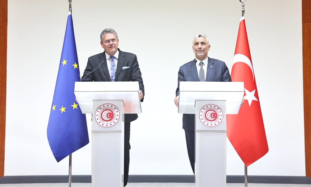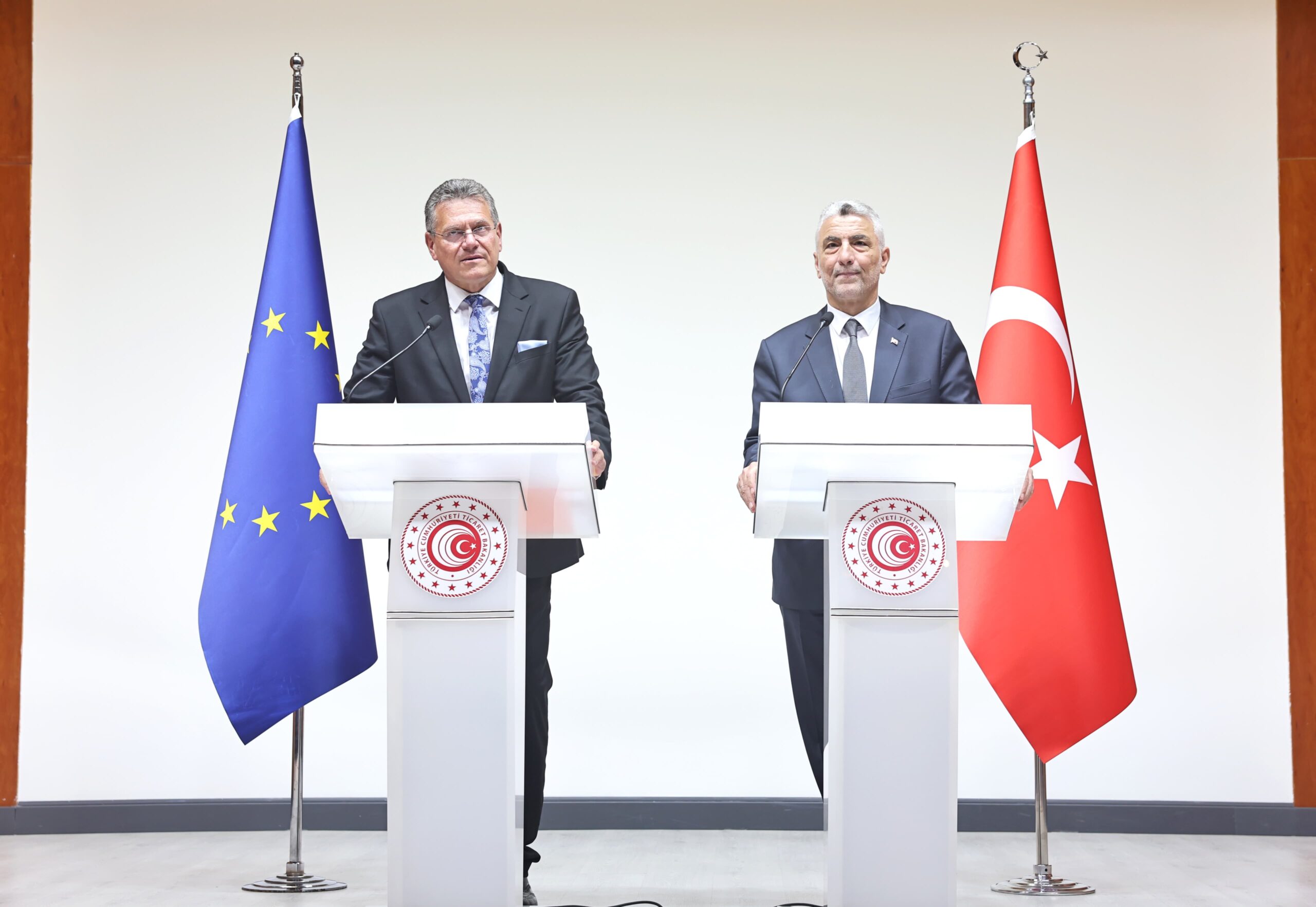 Bakan Bolat, Ticaret Bakanlığında düzenlenen AB-Türkiye Yüksek Düzeyli Ticaret Diyaloğu Toplantısında, AB Ticaret ve Ekonomik Güvenlik Komiseri Maros Sefcovic, AB Türkiye Delegasyonu Başkanı Büyükelçi Thomas Hans Ossowski ve beraberindeki heyetle bir araya geldi. Yaklaşık 3 saat süren toplantının ardından ortak basın toplantısı düzenlendi. Bakan Bolat, “Türkiye, 60 yıldan bu yana Ankara Ortaklık Anlaşmasından sonra, Avrupa Birliği ile ekonomik entegrasyon süreci içindedir. Gümrük Birliğinin bir üyesidir ve Avrupa Birliği ile katılma müzakereleri sürecinde aday ülke konumundadır. Bu doğrultuda, bugünkü toplantımızda ticaret engellerinin aşılması, elektronik olarak düzenlenmiş ATR (Dolaşım Belgeleri) belgelerinin AB tarafından kabulü, Türkiyenin TAREKS (Dış Ticarette Risk Esaslı Kontrol Sistemi) ve gözetim düzenlemeleri konusunda AB ile iş birliği yapmamız, yeşil ve dijital dönüşüm konularında iş birliğimizin derinleştirilmesinde kayda değer ilerlemeler sağladık” dedi.