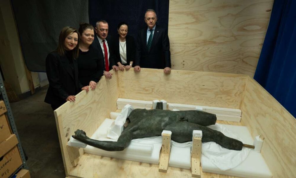 • Kültür ve Turizm Bakanlığı, Burdur’daki Boubon Antik Kenti’nden kaçırılan bronz imparator heykelinin Türkiye’ye dönüş sürecini tamamladı. Fotoğraf: Ankara, (DHA)